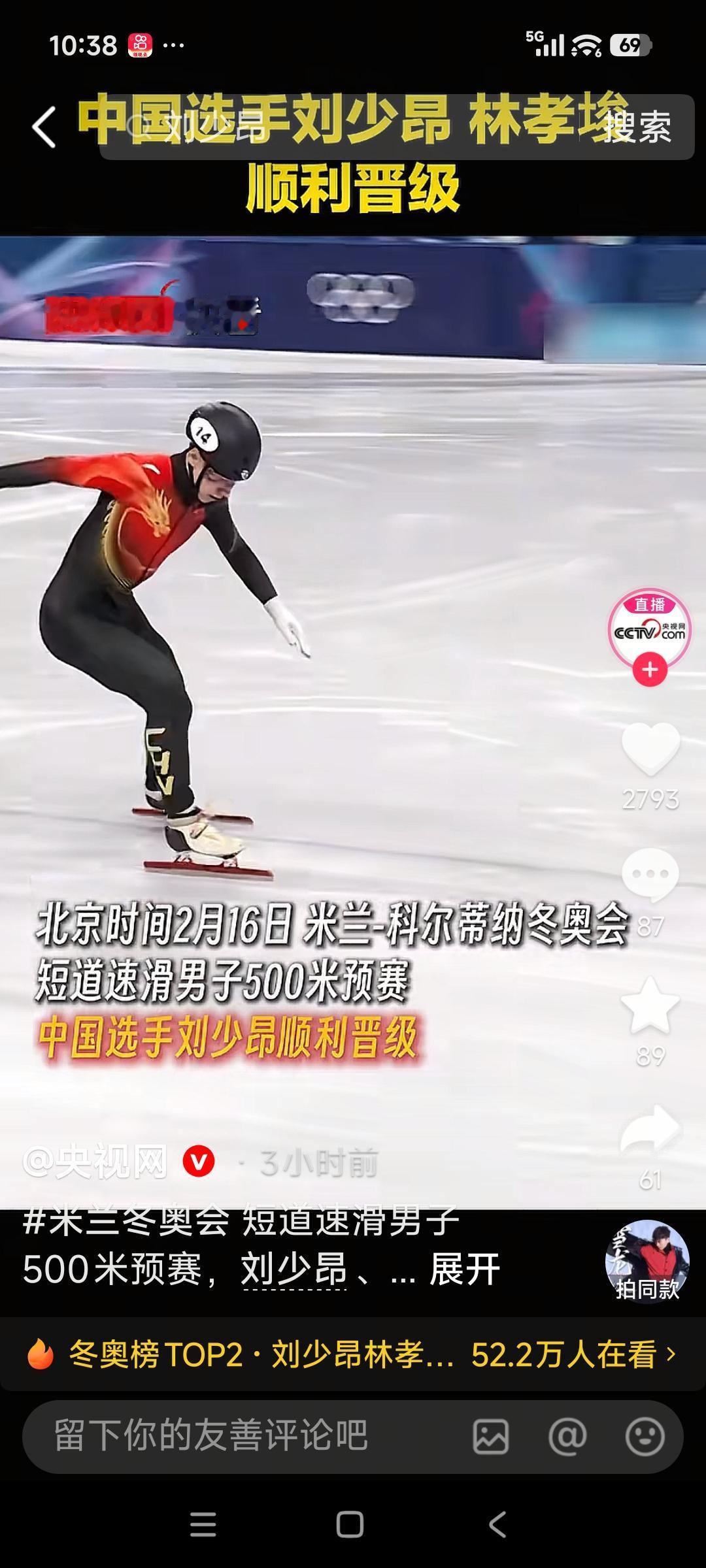 中国短道速滑男子500米,刘少昂、林孝埈携手挺进决赛,双保险出击,太提气!冰上百米飞人大战,速度与对抗拉满,两人稳、准、狠,顶住压力、配合默契,展现中国短道硬实力。期待决赛放手一搏,冲刺金牌,为国争光!