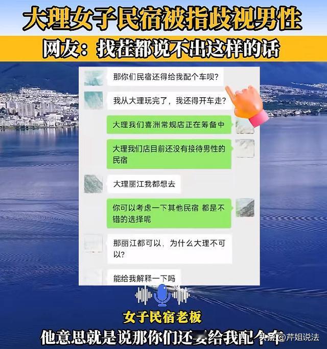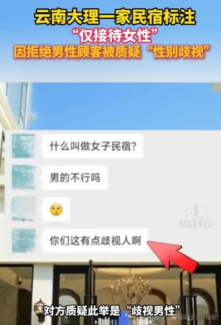 云南大理,有家开在古城边上的民宿,打从开业起就只接待女客人,预订平台、门口牌子上都写得清清楚楚。前几天下午,一个男的路过看到,非要进去住,店家反复解释也没用,被拒后当场懵了,吐槽这是性别歧视,还掏出手机说要投诉店家,闹得周围人都来看热闹。 一开始看到这事,也是也愣了一下。 毕竟大理民宿多如牛毛,从没见过哪家明着说不接男客人的。后来我才知道,这家民宿的老板,是个女生,之前自己独自旅行时,住过混住民宿,总觉得不自在,也担心安全。 她开这家民宿的初心,就是想给独自来大理的女生,一个安心的地方,不用顾虑作息不一样,不用防备陌生异性,晚上起夜也不用心惊胆战。 那天来的男顾客,看着三十出头,穿着休闲装,说是来大理旅游,没提前订房,看到这家民宿环境不错,就想直接入住。 民宿前台是个小姑娘,看到他是男的,就赶紧上前说,不好意思哥,我们家只接待女客人,你可以看看旁边的民宿,都能住。 可这男顾客不乐意的说:凭啥不接男的?你们这不是明摆着歧视男性吗?我花钱住宿,你们凭什么拒客? 小姑娘被他说的有点慌,又解释了一遍,说这是店里的规定,也是为了女客人的安全考虑,提前都公示过了。 没想到这男的更生气了,直接堵在民宿门口,声音越喊越大,说店家搞性别对立,还说要投诉。 周围路过的游客,有的拿出手机拍照录像,有的上前劝架,说人家提前写清楚了,不愿意就换一家,没必要闹成这样。 也有几个人小声议论,说确实有点不合适,都是花钱消费,凭性别拒客,好像真的有点歧视。 店家老板听到动静,赶紧从里屋出来,跟男顾客好好沟通,说不是排斥他个人,是整个民宿的定位就是女性专属,希望他能理解。 可男顾客根本不听,僵持了快半个小时,最后撂下一句“着被投诉吧,就地走了。 后来有人把当天的视频发到了网上,网友们一下子就吵翻了,分成了两派,吵得不可开交。 支持民宿的人占了大多数,都说太能理解了。 很多女生留言说,独自旅行最在意的就是住宿安全,混住民宿里,遇到打呼噜的、不讲卫生的异性,真的很崩溃,有这样一家专属民宿,太有必要了。 还有人说,女厕所、女生宿舍、美容院,不也都是只让女生进吗?咋没人说歧视男性?凭啥民宿只接女生就不行? 其实,人家提前公示了规定,没有隐瞒,你不接受可以选择别的,没必要硬闯,还闹得这么难看。 不过反对的声音也不少,有人说,民宿是经营性场所,面向的是所有消费者,凭性别拒客,确实违反了公平原则。 还有人抬杠说,如果有一家民宿只接男性,不接女性,估计早就被骂上热搜了,双标太明显。 甚至有网友说,老板就是想博眼球、搞噱头,借着“女性安全”的名义,吸引流量,说白了就是想多赚钱。 其实,女生想要的,是一个能放下防备的专属空间,而男顾客觉得,自己的消费权被侵犯了,凭什么因为性别就被拒之门外。 不过热闹归热闹,从法律层面来讲,民宿这种“仅限女性入住”的规定,到底合不合法?算不算性别歧视? 据《消费者权益保护法》第十六条,里面明确说,经营者提供商品或者服务,要诚信经营,保障消费者的合法权益,不能设定不公平、不合理的交易条件。 民宿拒接男客人,不就是设定不合理的交易条件吗? 其实不是这样的,这条法律的关键,是“无正当理由”的限制才违法。 这家民宿的限制,是基于女性安全的合理考量,而且提前在平台和门店公示,让消费者有选择的余地,并不是无差别拒接男性,也没有损害男性的合法权益,所以不算违反这条法律。 根据《民法典》第四条,里面说民事主体在民事活动中的法律地位一律平等。很多人拿这条说事,觉得民宿凭性别拒客,就是违反了平等原则。 但平等不是绝对的,不是说所有场所都必须无差别接待所有人。就像女厕所只能女生进,男生不能进,这不是歧视,是基于生理差异和隐私保护的合理区分,法律是认可的。 民宿也是一样,它打造的是女性专属的安全空间,这种区分,是为了满足特定人群的需求,不是故意排斥男性,所以也不违反平等原则。 男顾客说要投诉,其实大概率是投诉不成的,因为民宿的规定合法合理,而且没有侵犯他的任何权益,他只是单纯不接受而已。 老板有自己的经营定位,想给女生一个安心的空间,没毛病,男顾客觉得被拒绝不舒服,可以理解,但也没必要当场发难,毕竟人家提前都说清楚了。 现在越来越多元化,有专门的女性民宿,有专门的宠物友好民宿,还有专门的老年人民宿,这都是为了满足不同人的需求,不是什么歧视。 而且说到底,民宿不是公共服务场所,它是私人经营的,只要不违法、不违背公序良俗,老板有权利设定自己的接待规则。 问问大家,你们觉得这家民宿只接女生,算性别歧视吗?如果是你,遇到这样的民宿,会支持还是反对?要是你是那个男顾客,会怎么做?评论区说说你的看法。