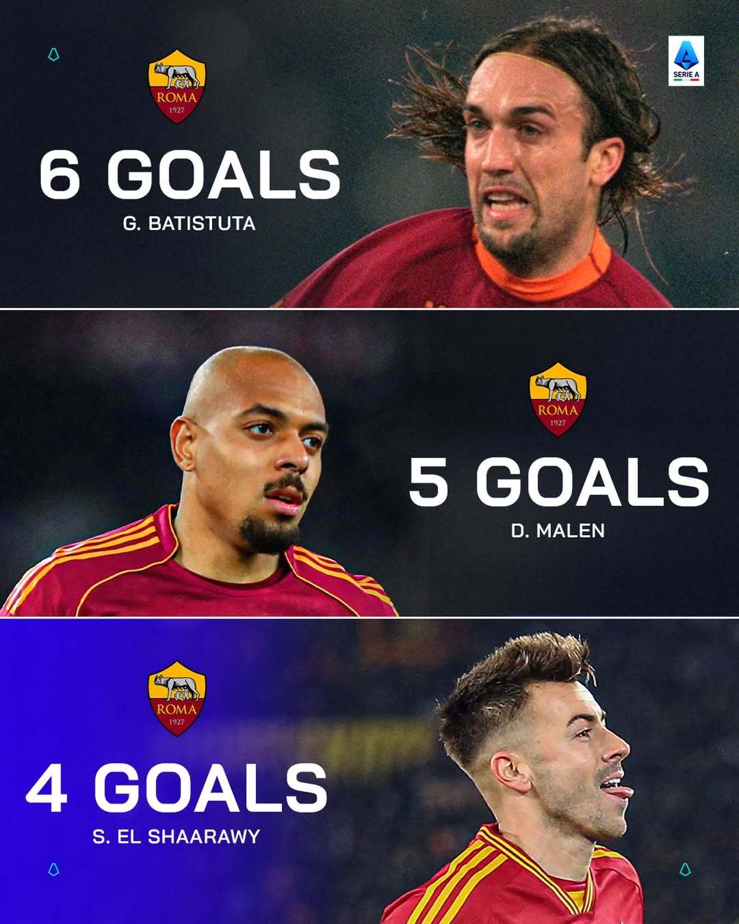 马伦加盟罗马前5场5球,仅次于巴蒂的前5场6球(自1994年以来),沙拉维前5场4球排名第三。