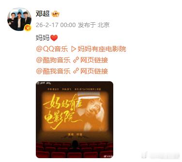 邓超新歌上线 超哥打煽情牌给我看泪目了!平时搞笑的谐星,突然唱起这么暖的歌,猝不及防就给我伤感了一下。邓超作为演员的情绪感染力不可不谓顶级啊,隔着屏幕我都要掉小珍珠了。新歌《妈妈有座电影院》都快去听!原来把邓超电池抠了是这样的