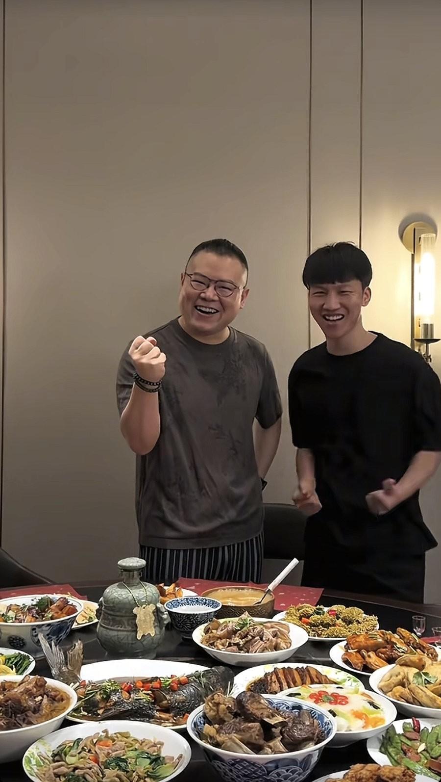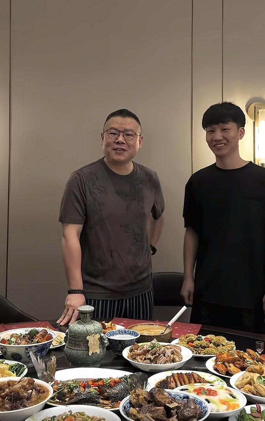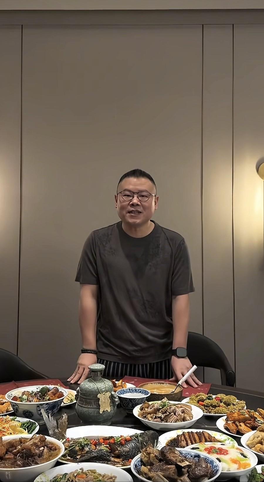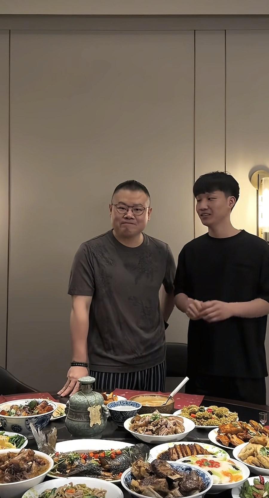 除夕夜,岳云鹏未登春晚,在家招待徒弟,一瓶酒1万多! 2月16日除夕夜,央视春晚举办得如火如荼,可惜的是,今年没有看到德云社的相声演员,更没有看到岳云鹏。 或许是时代不一样了,导演的考虑也不同,于是岳云鹏这回除夕终于可以在家陪伴家人,休息一下了。 岳云鹏录了视频,是和徒弟刘筱亭一起的,原来徒弟们也跑到岳云鹏的家里吃饭了,想象一下那种场面是非常热闹的。 岳云鹏穿着黑色的短袖,戴了名表和手串,那块黑表特别亮眼,不知道多少钱,感觉挺贵的,以他的身价戴这种表真的刚刚好。 桌子上摆了好多菜品,不只是岳云鹏喜欢吃的河南菜了,更多是大家都喜欢吃的,有大闸蟹、鱼,其中那一瓶白酒格外引人关注。 不少网友纷纷认出了这款酒是牛栏山的,单瓶价格超过1万,看来岳云鹏真是豪气,如此大方招待徒弟们,怪不得刘筱亭笑得那么灿烂,愿意来他家里吃饭。 而岳云鹏没有参加春晚,更加放松了,他说要来好多师兄弟,不只是徒弟,于是可以看到,他和刘筱亭互动的时候是非常开心地,比说相声还有松弛感。 往年岳云鹏与家人一起过除夕时,更多吃的是面食,比如饺子之类的河南菜,但这次却是美味佳肴名酒海鲜,可见他的口味也是多变的,那瓶酒是最大的亮点。