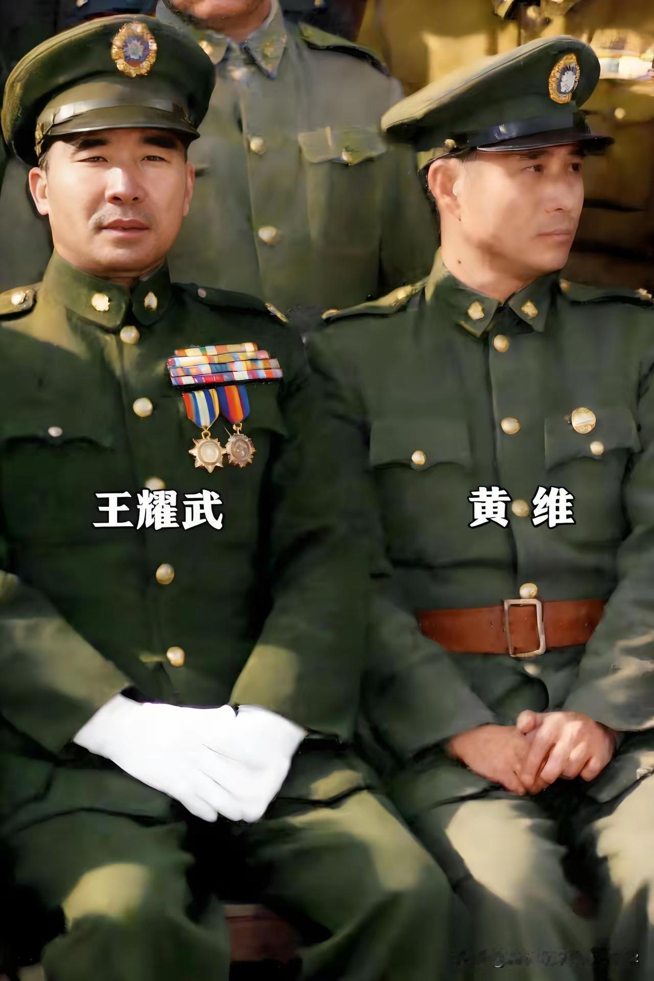 这是在20世纪40年代的一次军事会议或活动中王耀武与黄维两位国民党高级将领的罕见