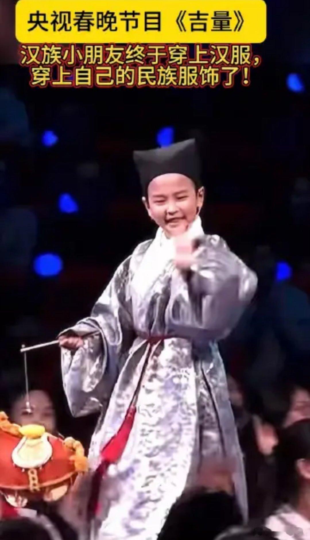 春晚汉族小朋友穿了汉服中国每个民族都有自己独特的传统服饰,汉族的传统服饰就是汉服了。五十六个民族,五十六朵花。五十六族兄弟姐妹是一家。