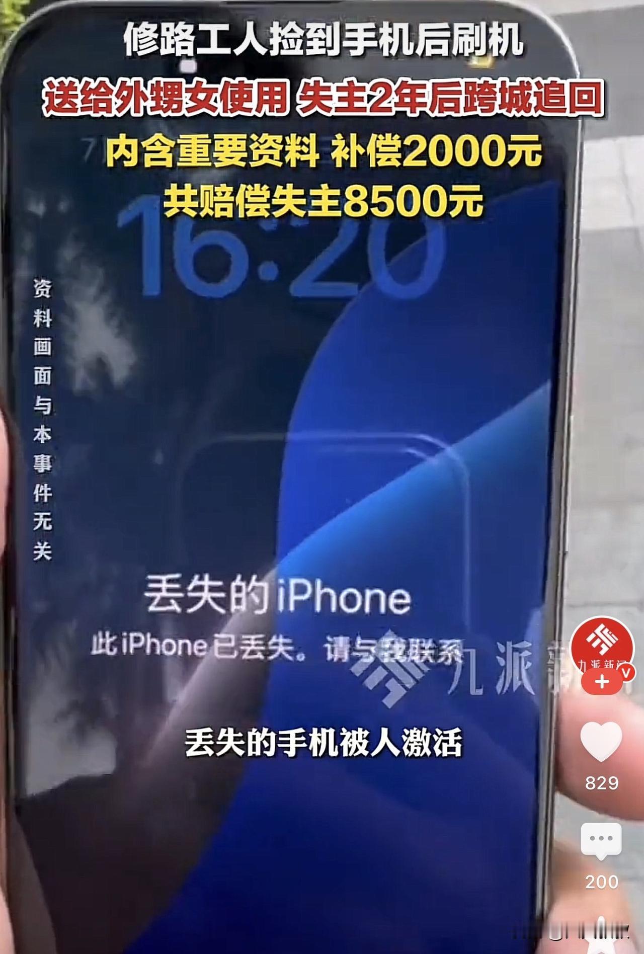 黑龙江大庆,一女子手机丢失后因忙于备考,所以就搁置了此事,一年多之后,女子偶然发现手机被人激活,而且还开始使用起来,将信息提交给警方后,手机不仅成功追回,而且还额外多要了2000元。 2023年10月,刘女士在购物的时候,不慎将自己价值6000多元的手机遗失了,因为手机内有大量的资料,随即刘女士就报了警。因为自己忙于备考,所以此事就暂时搁置了起来。 24年8月的时候,刘女士查询官网发现,丢失的手机被激活,经官方查询,手机是在绥化被激活,在沈阳被人使用。 今年2月,警方找到了这部手机,原来,在刘女士丢失之后,被一名修路工人捡到了,对方刷机之后,就把手机送给了外甥女使用。 经过调解,对方赔偿了刘女士8500元,其中2000元为寻找手机以及补办资料等费用。 事发后,网友表示,02年的时候,我也捡到过一个手机,还给对方后,对方千恩万谢非要给我几百元报酬,被我拒绝了,15年的时候,我手机也丢失了,捡到手机的竟然是一个02年的小伙子,这大概就是福报吧,02年我也是一个小伙子呢。 还有网友表示,主要是看遇到什么人,之前看到过一个大妈,捡到人家手机非要2000元才行,最后民警调解都没办法,人家理由很简单,我是捡的不是偷的。 也有网友说,我之前也丢过手机,对方接听后就要两包烟,我给他100元后他把手机还给我了。 确实如此,关键要看捡到手机的是什么样的人,有的人拾金不昧,有的人想要据为己有。 但是,捡到手机的,并不是说自然而然的就取得手机的所有权了,民法典规定,拾得遗失物,应当返还权利人。拾得人应当及时通知权利人领取,或者送交公安等有关部门。 所以,捡到他人物品的,应当及时返还给权利人,而不是据为己有。 如果据为己有,那么性质就变了,据为己有的,在法律上属于侵占他人财物的行为,如果侵占的数额较大,会涉及到侵占罪这个罪名的,即拾得他人物品拒不归还的,处2年以下有期徒刑,因此,捡到他人财物不归还的,一定程度上,会构成刑事犯罪。 就本案来看,刘女士手机丢失后,被修路工人捡到后刷机给了外甥女使用,显然这是据为己有的表现形式,而且刷机之后,刘女士手机上的资料也是没有办法恢复的,或者说恢复需要额外支出一笔费用,在这种情况下,拾得者就要承担民事责任了。 民法典第三百一十六条规定,拾得人在遗失物送交有关部门前,有关部门在遗失物被领取前,应当妥善保管遗失物。因故意或者重大过失致使遗失物毁损、灭失的,应当承担民事责任。 这也就是为何刘女士能够额外索要2000元,用于补办资料等费用,这就是刘女士的额外损失。 谁能想到,手机丢了2年还能够被寻回,所以说,如果捡到了手机,虽然想要占有,但是手机上的原始信息一直都是原始购买人的,你如果想要据为己有,一旦被找上了门,可就尴尬了。 对此,你对本案有什么看法? —————————— 关注我,带你评析法律热点,关注冷暖人生。 文章原创,抄袭必究