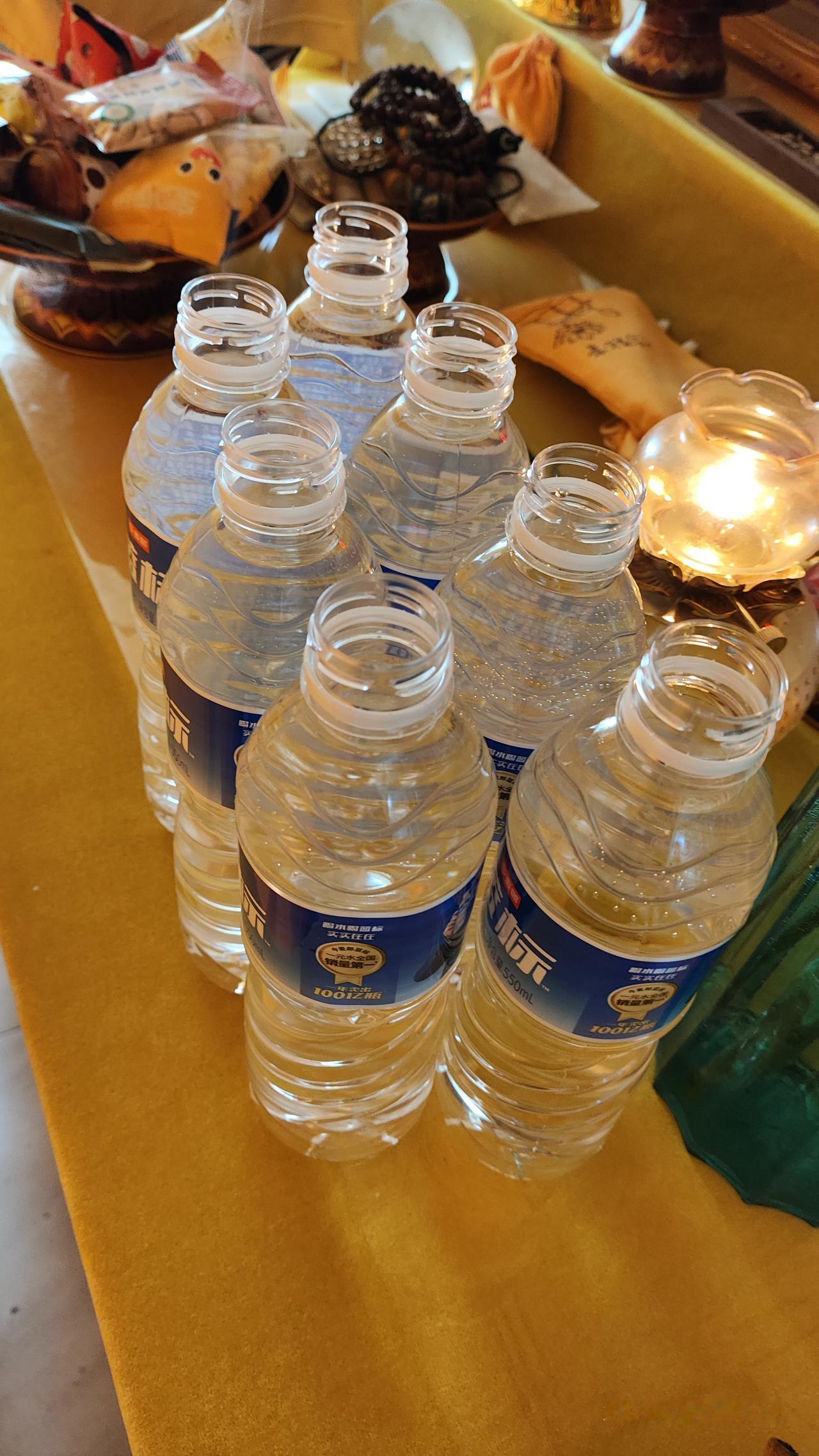 老公在佛前供了七瓶水…… 刚刚在架子上看到好多瓶盖。 我问老公怎么不扔掉,你还要吗? 他说当然要啊。 我说你要他干嘛? 他说水供完之后撤下来再盖上啊。 我才发现,原来他供上的这个水,把瓶盖拧开了。 昨天听他说供水,我以为是连瓶带盖,直接放到那,原来还要拧开瓶盖啊。 [捂脸]老公问我,你喝水不拧开瓶盖啊? 我问他为什么要共七瓶啊。 他说他也不知道,他说修法的时候都是要供七杯。