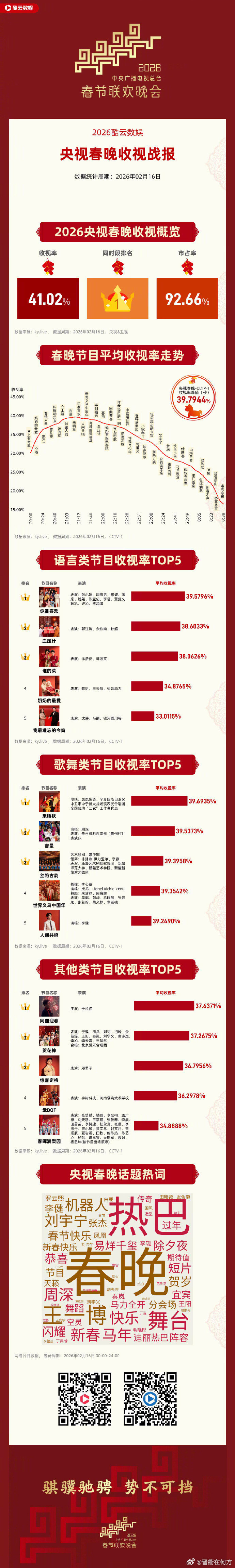 【周深吉量歌舞类节目收视TOP2】周深吉量叫好又叫座周深 2026马年春晚圆满落幕,总收视率高达41.02%。据数据显示,在歌舞类节目中,演唱的《吉量》进入收视率前三🔥!不愧是周深,真的太争气了! 打卡衢州