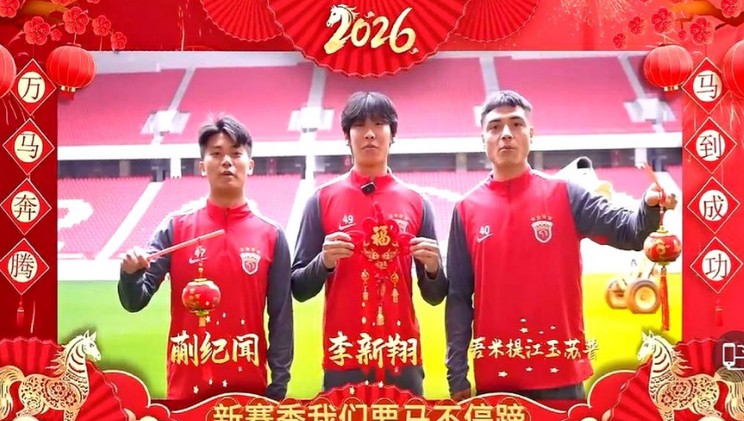 马年新春,俱乐部发了个祝福视频。武磊、张琳芃这批老将先上,然后是小将、新援和外援,最后主教练穆斯卡特压轴。