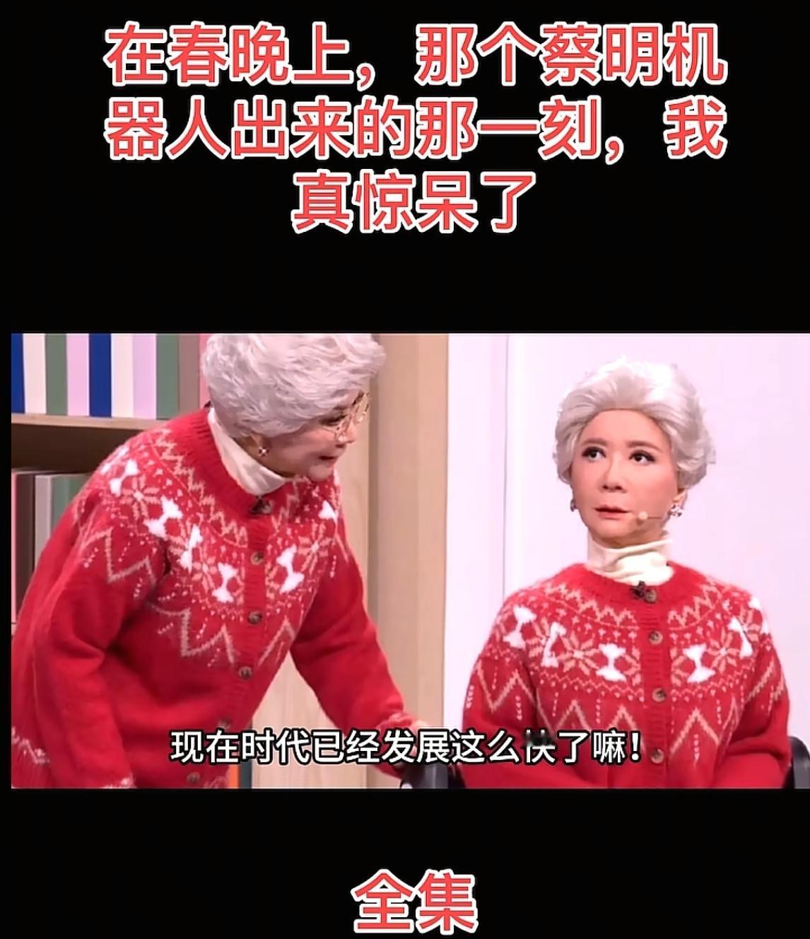 看了春晚第一个小品我惊呆了 现在时代已经发展这么快了嘛! 在春晚上,蔡明饰演的奶奶角色, 那个蔡明机器人出来的那一刻, 我真惊呆了,这也太像了吧! 简直跟真的一样! 除了眼神稍显呆滞,那皮肤、鼻子、嘴巴,还有体型,逼真到说它是真人我都信。 这不禁让我感叹,科技进步真的超乎想象。以前觉得机器人离生活还远,现在却能如此逼真地出现在春晚舞台。 这不仅是科技实力的展现,更让咱看到未来生活更多的可能性。说不定哪天,机器人就像家电一样普及。大家觉得未来机器人会给生活带来啥改变?快在评论区聊聊。机器人上春晚 春晚机器人表演