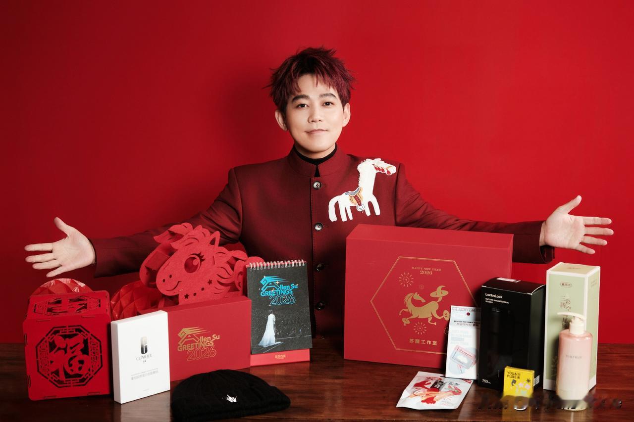 2月17日,工作室更新苏醒新年宣传照,好帅呀,一看就是花巨资拍摄的,太有感觉了。 苏醒身穿红色西服套装,搭配红色头发,这应该是新年的第二套宣传照,看起来太喜庆了。 醒哥还拿了各种道具拍照,包括风筝、灯笼、窗花等。 目前,醒哥带着一家人到云南旅游,祝他们玩的愉快。