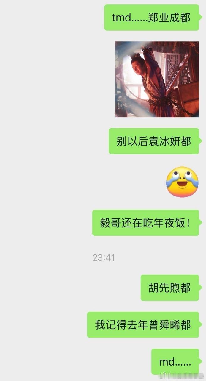 能被成毅粉丝笑晕,它们群里说大家(刘宇宁、郑业成、曾舜晞、刘学义)都去春晚了,别哪天袁冰妍都去了,老呃都去不了