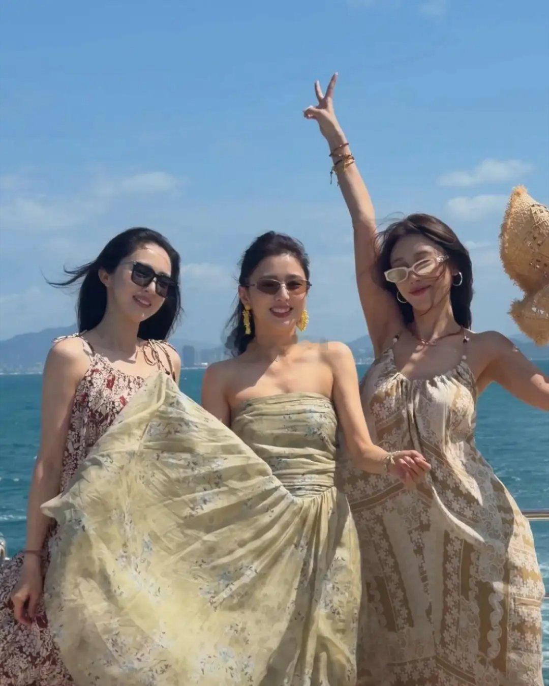 佟丽娅、董璇、温宇闺蜜团游三亚。没有男人参与别提有多欢乐了
