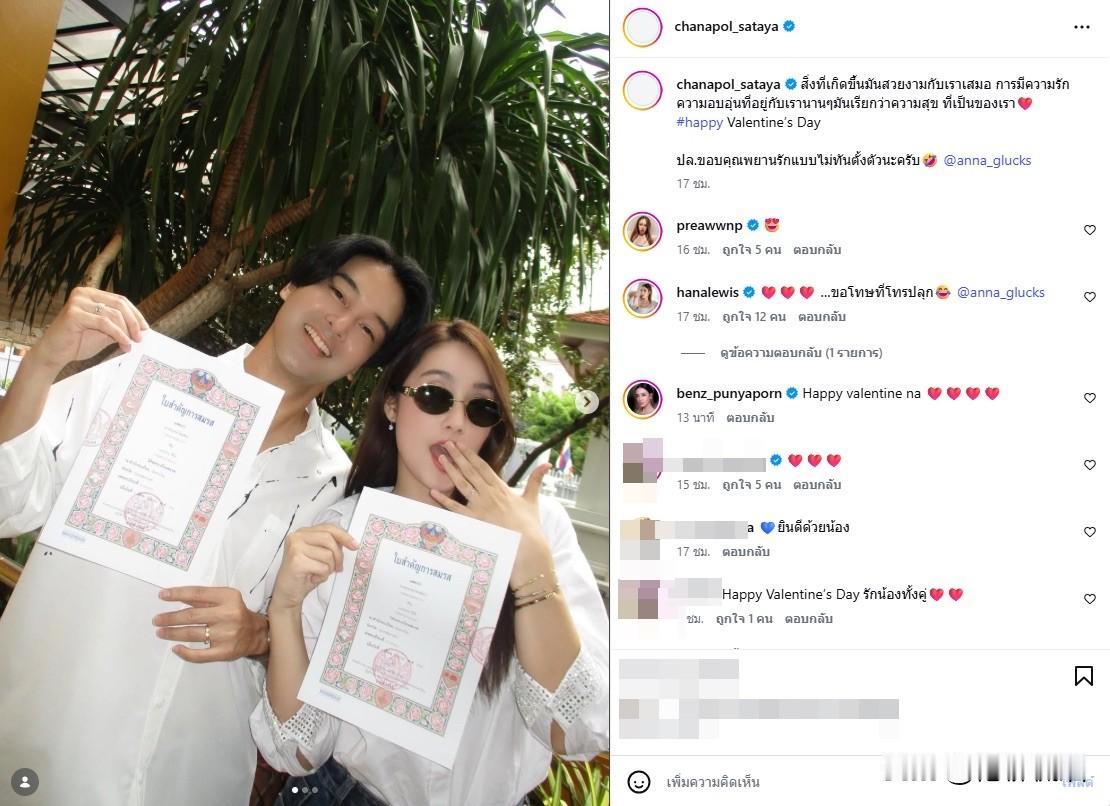 Hana、Aof在情人节领证了。。恭喜啦!🎉🎉