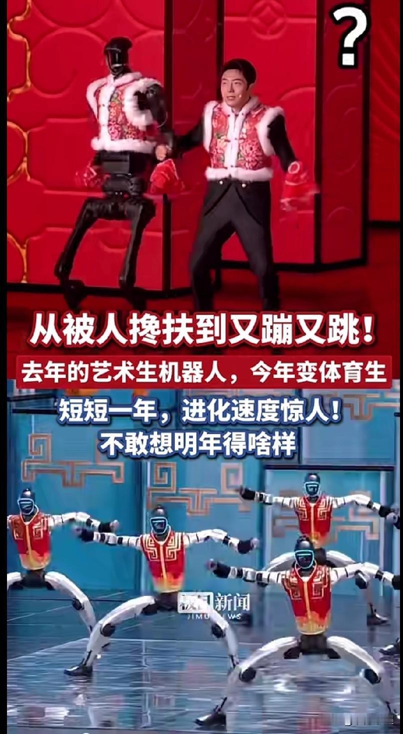 看不懂就不要说春晚不好看! 今年春晚中出现了大量的机器人,多个节目中出现了机器人,小品中机器人做的跟蔡明一模一样,动作类节目中机器人能翻跟头能稳稳地落地,动作灵巧娴熟,机器人还可以和演员说相声,很多人说不愿意看这样的节目,满满的科技感,少了烟火气、人味。 但是,这些人看的是太狭隘了,这些机器人是给你看的吗?这些机器人是给那些外国人看的,给那些不怀好意的人看的,我们是在向外展示我们的科技实力,展示我们的进步。 祝福我国的科级实力越来越强,希望将来机器人能应用到各个领域,特别是危险作业,如抢险救灾,那样就可以减少抢险人员的伤亡,让科级造福人类!