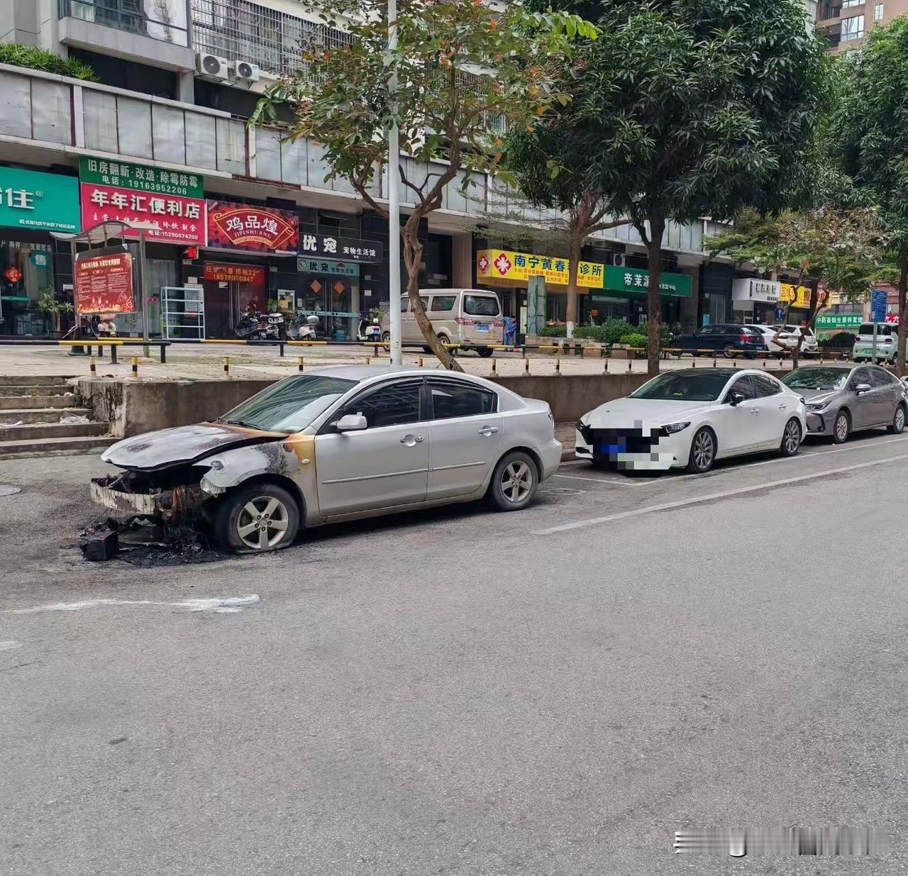 一觉醒来,车没了!大年初一,在北湖市场对面路边停放的一辆轿车被烧成废铁,车主怎么也没想到,自己只是像往常一样把车停在路边过夜,醒来面对的却是这样一幅景象:爱车的车头被大火吞噬得只剩骨架。 南宁禁放区早已划定,但总有人心存侥幸,在市区路边偷偷燃放烟花爆竹,点燃的是年味,留下的却是灾难。 南宁身边事