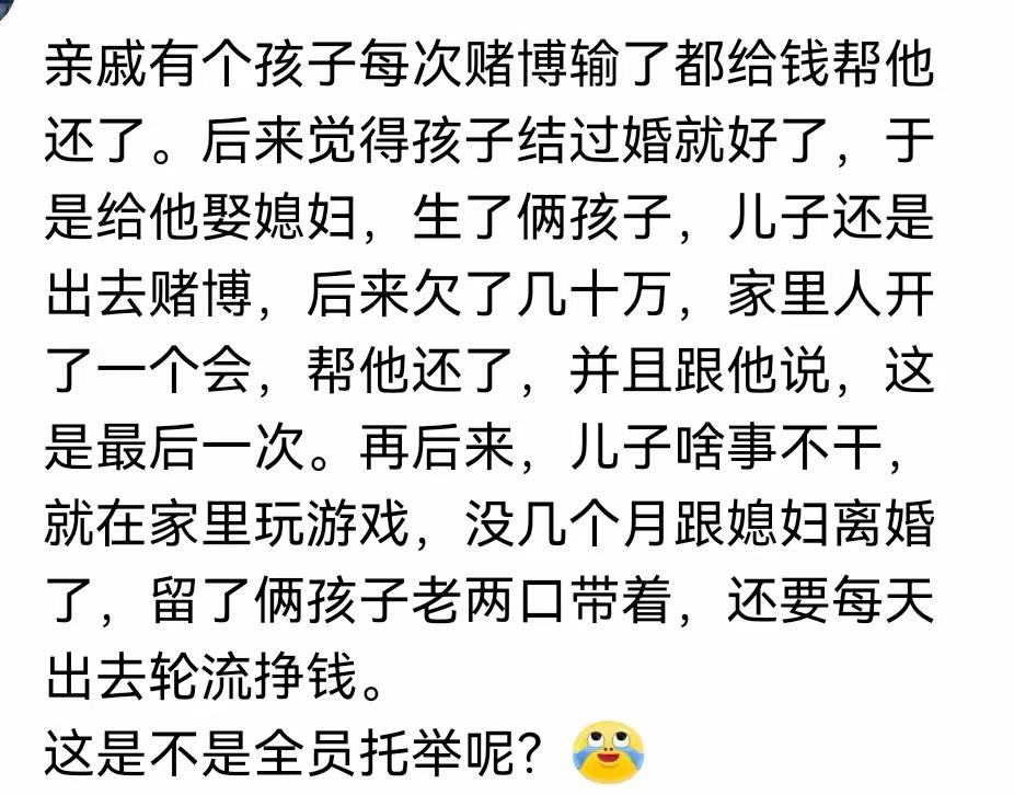 孩子赌博的钱,一分都不该给还,这个毛病不能纵容,是无底洞。