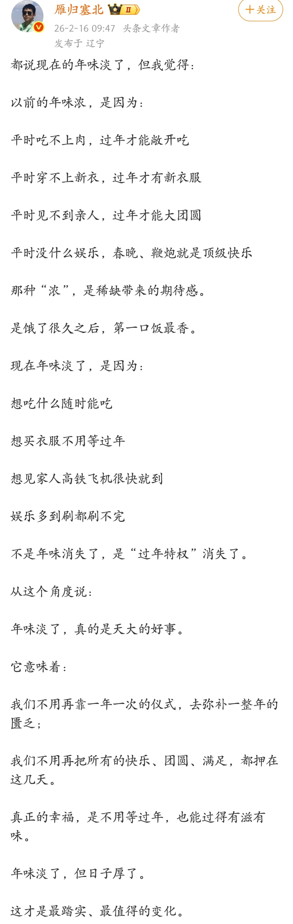 不是年味消失了,是 “过年特权” 消失了。年味淡了,真的是天大的好事。
