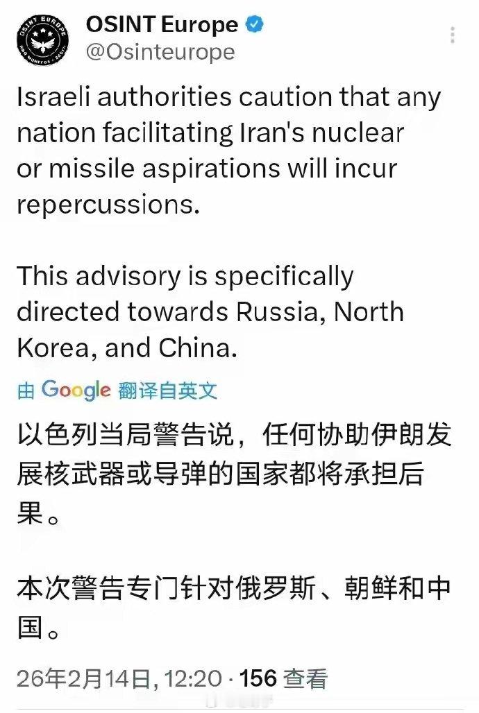 中东伊朗最新局势 以色列罕见地对中国发出严厉警告,声称若中国协助伊朗发展核武器或弹道导弹能力,将面临“灾难性后果”。这一表态明确将中国与俄罗斯、朝鲜一同列为被点名的对象。