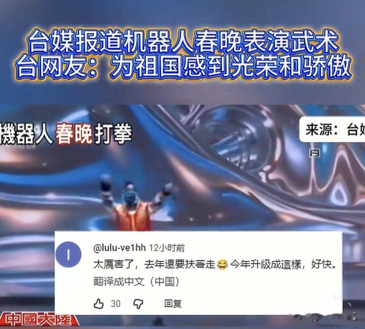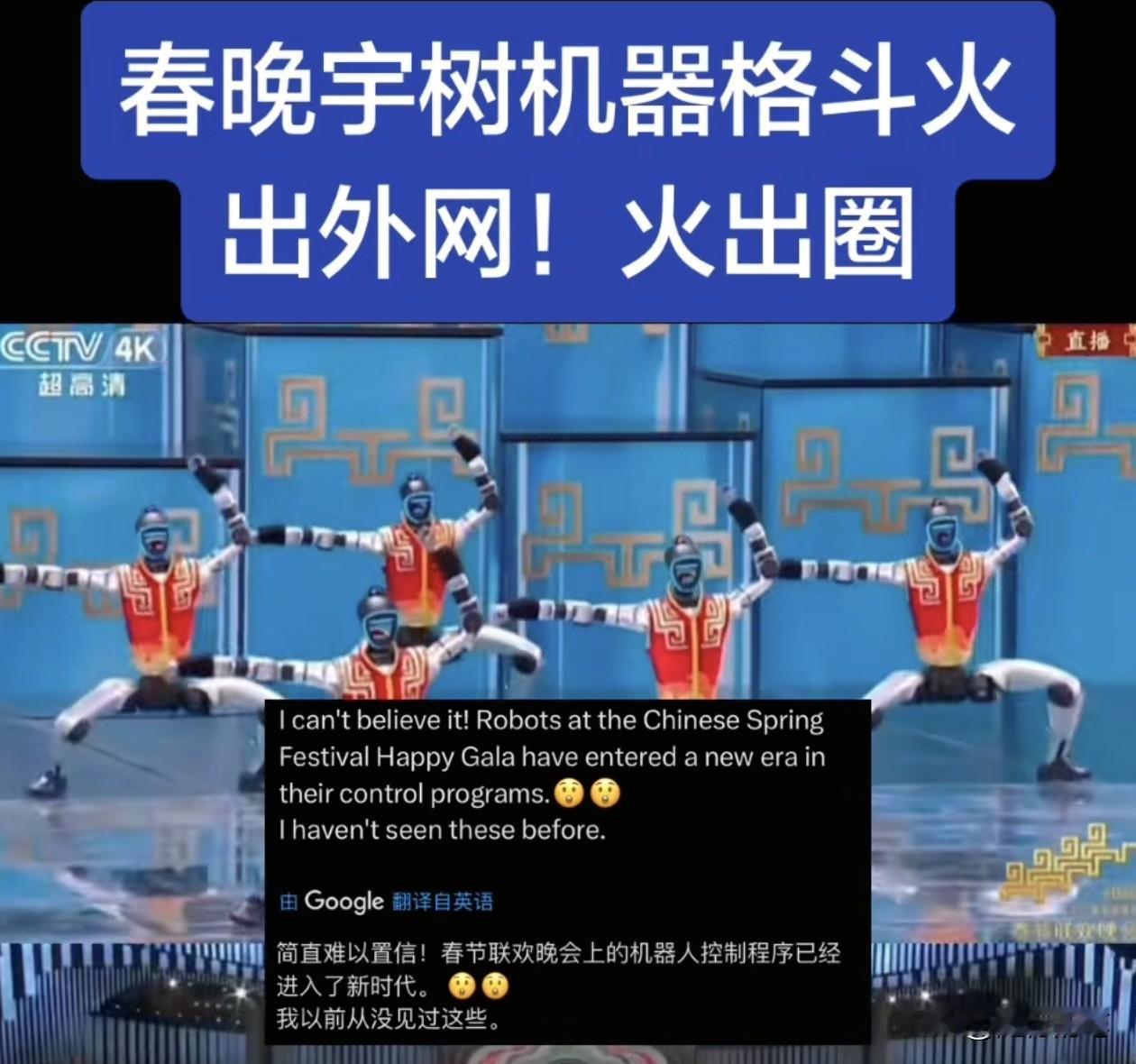 宇树科技昨晚春晚的机器人武术表演节目在外网引起高度关注。 不仅台媒转载报道,西方众多网红也转载,而且几乎每个转载视频都有很高的观看次数,特别是评论数量都是几百甚至上千条,这种情况说明宇树科技这次马年春晚的机器人武术表演节目不仅掳获了国内观众的心,也征服了国外和岛内民众的心。宇树科技机器人如此快速的进步获得认可,并且受到全球关注,第一突显我国在机器人领域已经走在世界领先地位,第二也显示如今世界上其他国家的科技公司,目前还没有可以组织庞大机器人群体做出复杂高难度动作,和真人配合的表演节目的能力。