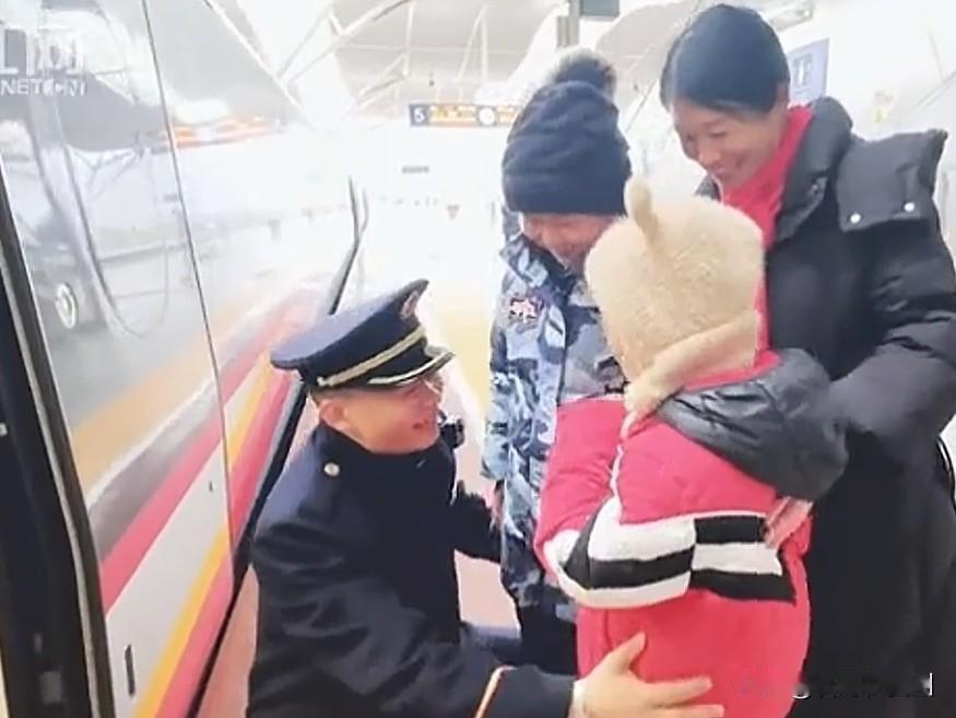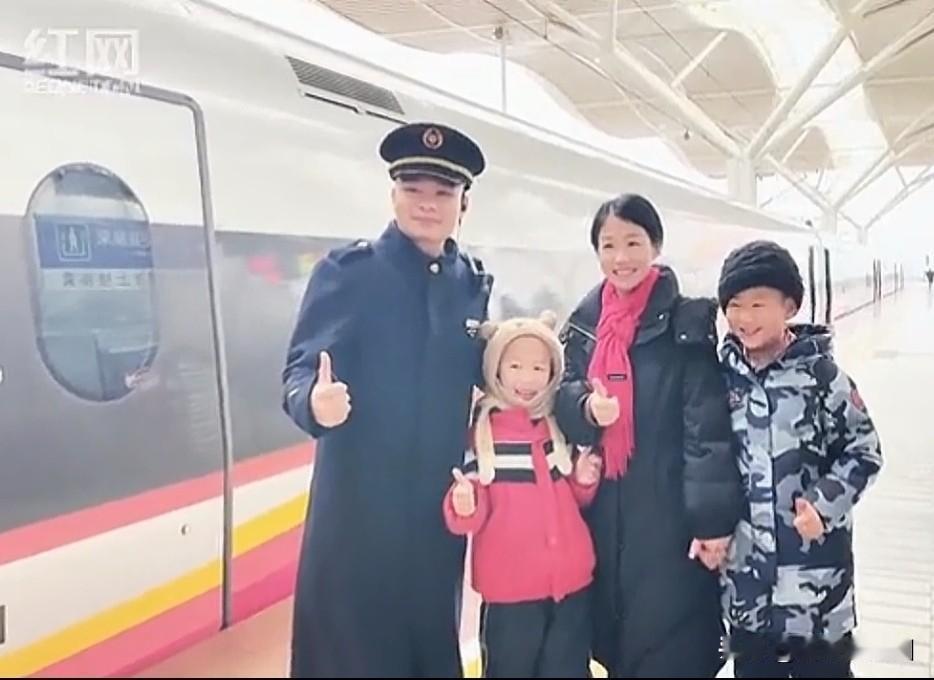 仅8分钟!除夕夜,妻子追着高铁给列车长丈夫送年夜饭 大年三十的晚上,咱们都在家里围着桌子吃团圆饭呢,可在长沙南站的站台上,却发生了这么一幕,看得人鼻子直发酸。 2月16号,除夕夜,长沙南站。G506次列车提前3分钟进站。车门一开,列车长唐成吉刚走下来,整个人突然愣住了。 为啥?因为他看见妻子覃凌之,一手牵着个小不点,一手抱着个保温饭盒,旁边还站着个大儿子,娘仨正笑着冲他挥手呢。 这可不是一般的“送饭”。 妻子怕进不了站,特意买了丈夫值乘的这趟车票。为了这顿饭,她忙活了半天,做的全是丈夫最爱吃的家乡味:珍珠肉丸、香煎鲈鱼,还有这大冬天最暖身的冬笋炒腊肉。为啥要费这么大劲?因为丈夫是列车长,除夕夜得在车上过;她是医院的护士,吃完这顿饭也得赶回去值班。这一家四口,就指着这靠站的8分钟,过个年。 站台上哪有桌子凳子啊?一家四口就挤在冰冷的站台边。 妻子赶紧打开饭盒,饭菜还冒着热气呢。她一个劲儿地往丈夫碗里夹菜,丈夫蹲在地上,一边抱着小儿子,一边大口往嘴里扒拉,嘴里含糊地嘟囔着“好吃、好吃”。俩孩子也不闹,就紧紧挨着爸爸,喊了声“爸爸过年好”。就这么简简单单的三道菜,比啥山珍海味都香。 这顿饭吃得急啊,8分钟,够干啥的?还不够咱们看个短视频的时间。可对于这一家人来说,这8分钟,就是他们最金贵的团圆。 这时候,列车的发车铃响了。 丈夫唐成吉擦了擦嘴,站起身,一把抱紧了俩孩子,又看了看媳妇。啥也没多说,转过身就往车上走。他不是心狠,他是列车长,车上上千号人都等着他带着回家呢。看着丈夫转身回去的背影,妻子覃凌之就这么站在站台上,抱着空饭盒,目送着列车缓缓开走。 一个刚送完饭,转身要去医院救死扶伤;一个刚吃完年夜饭,转身要继续护送旅客回家。 这两口子,一个穿着铁路制服,一个穿着白大褂,在这个除夕夜,把团圆留给了万家灯火,却把背影和思念,留给了对方。 说实话,啥叫年味啊?不是非得大鱼大肉,也不一定是放烟花鞭炮。真正的年味,就是哪怕只有8分钟,哪怕在人来人往的站台上,只要这一家人能抱在一起,心就是热的。 看到这个画面,你有没有想起那些过年还回不了家的人?你身边有没有这样为了大家、牺牲小家的坚守者?来评论区,咱们一起说说那些让人破防的瞬间。 除夕最暖站台团圆 春运坚守者的年夜饭