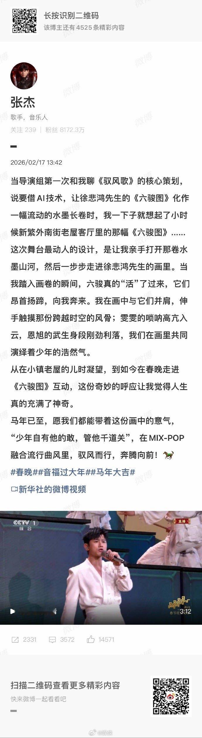 春晚张杰节目用了Seedance2.0张杰回应7上春晚 这才是顶级舞台!Seedance2.0赋能水墨六骏奔腾,张杰的演唱搭配唢呐与武生身段,再加上童年《六骏图》的奇妙呼应,七上春晚的他依旧稳得权威,满是东方美学的震撼!