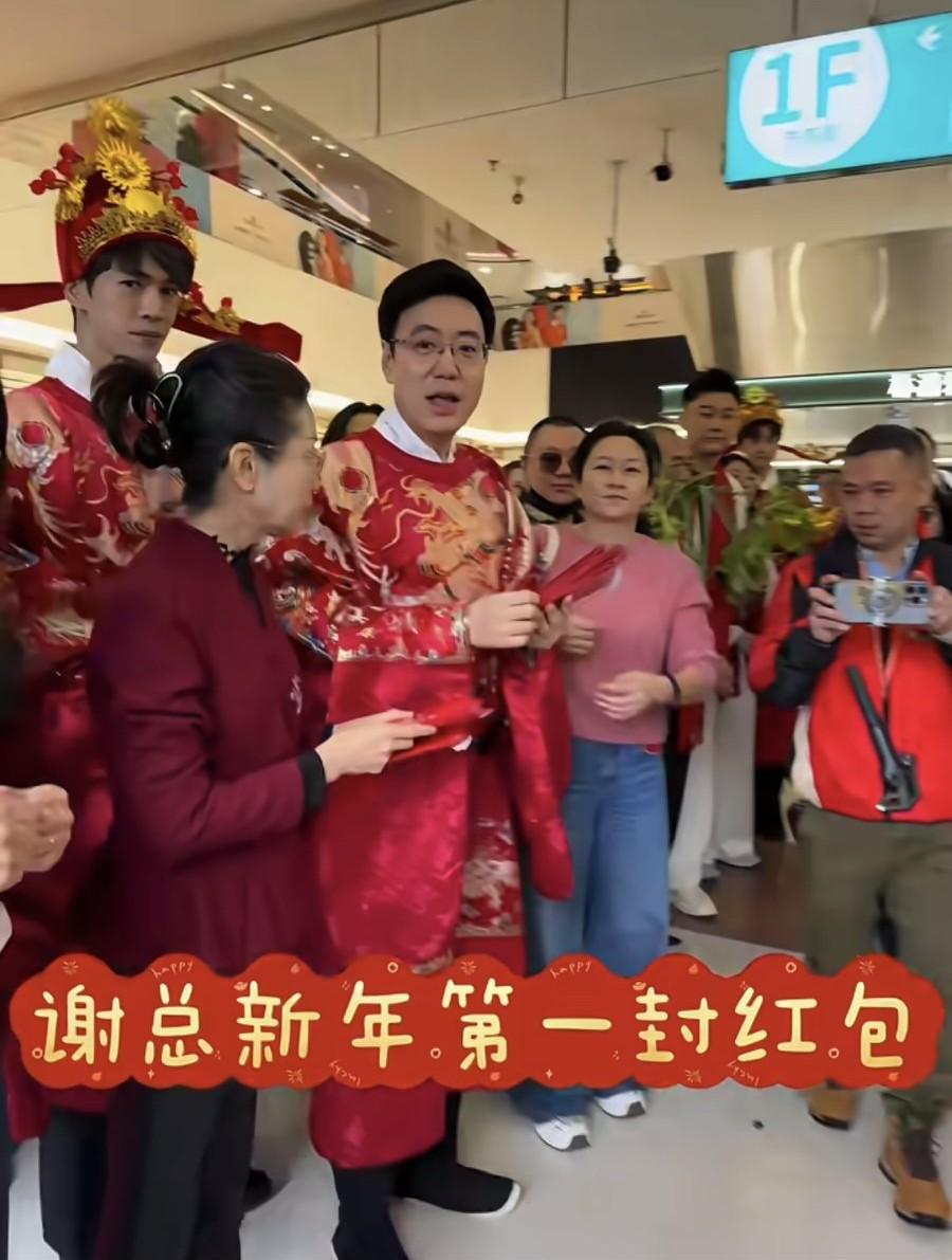 广州正佳广场老板谢萌,大年初一再度封神! 2月17日,大年初一,谢萌现身广州正佳广场,这是他自己成立的广场,他是老板,和别人不一样,别人是过来消费闲逛的,他是过来玩的,因为这是他的地盘。 谢萌大年初一没有像别的老板那样带着家人到处旅游,甚至飞到国外,而是来到正佳广场,他又是古装打扮,一身红色服饰,脚踩黑色布鞋,像是古代的贵族公子哥一样,非常儒雅。 谢萌是过来派发红包的,他可真够大方,前阵子正佳广场刚刚举办了大唐千灯会,他当场发了好多红包,虽然红包只有20元,但他是见人就给,发了无数个,他也不清楚到底发了多少。 结果大年初一,谢萌又大肆发红包,正好在正佳广场逛街的那些消费者,看到以后排队在门口向谢萌讨红包,谢萌非常热情大方地给他们发红包,有小孩也有老人,还有中年女性。 谢萌46岁了,曾经在新加坡留学,2002年加入正佳广场的筹备和建设,如今的正佳广场就是他的业务了,其父亲谢铁牛也快退居幕后了。 一般情况下,全国各地大型购物广场的老板都不会公开在春节露面,平时也是只有大的活动才会出来,不会和消费者这么近距离接触。 没想到正佳广场的谢萌竟然如此接地气,大年初一给顾客发红包,就像是给自己的家人发红包一样非常热情,难怪网友们对他印象很好,他这一次又封神了,而且是在大年初一!