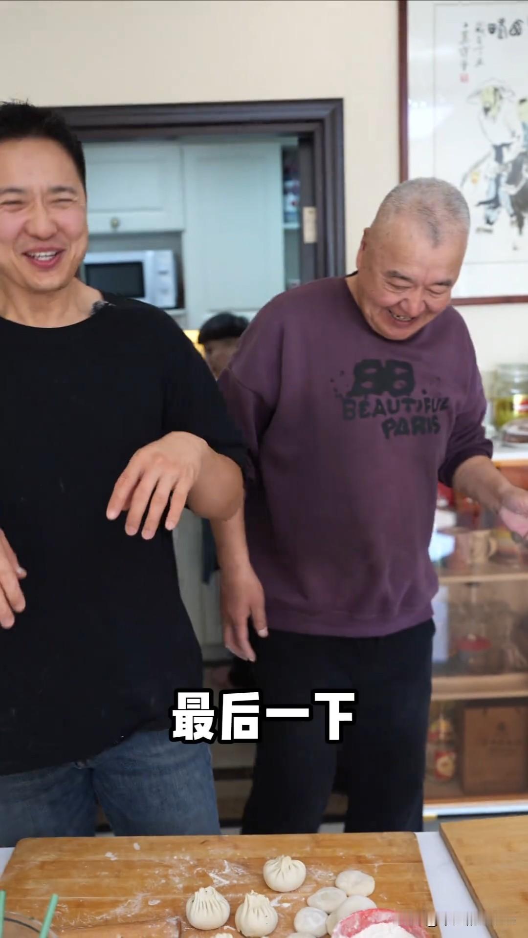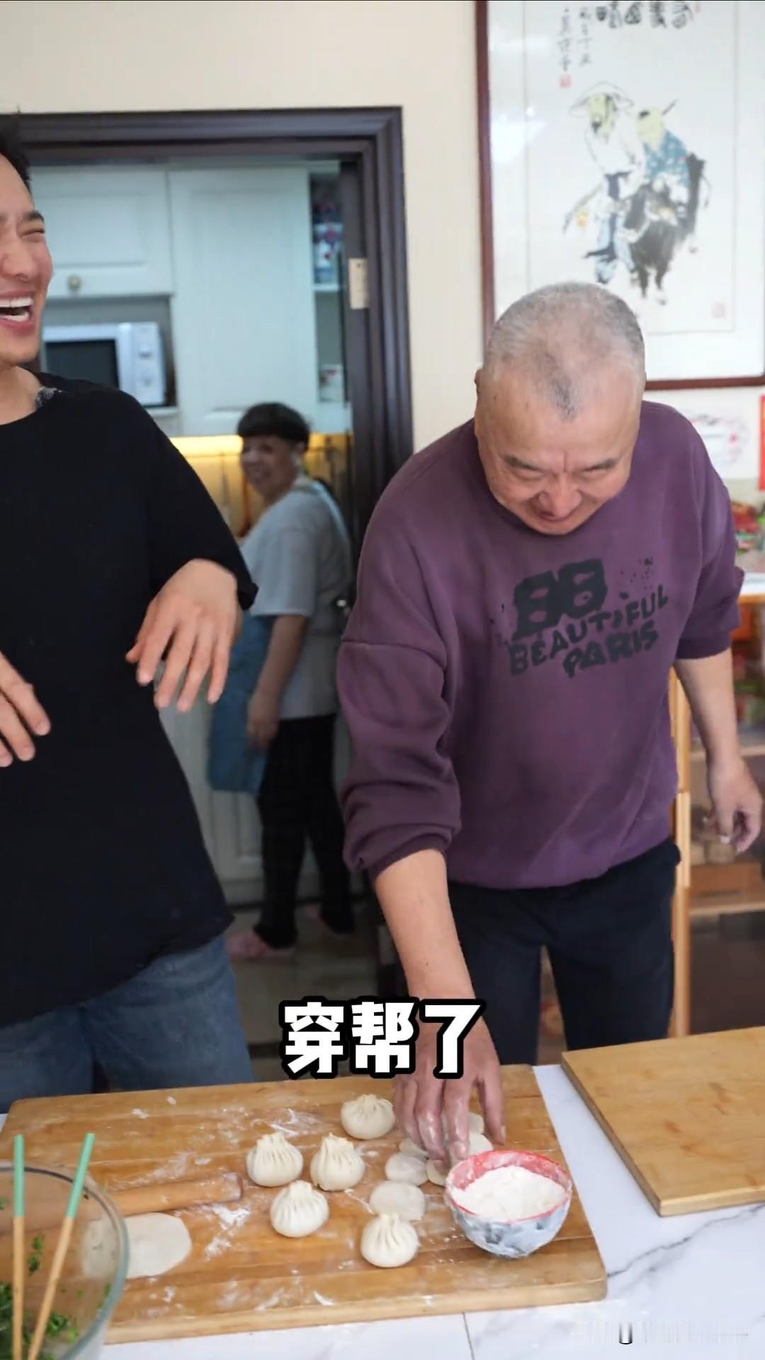 2月17日,高云翔更新动态,并配文“大年初一,露两手”。 我还以为他要表演什么才艺耶,结果是和老父亲一起表演包饺子。 高云翔站在前面,老爸现在儿子背面,叔叔只露出双手负责包饺子,结果父子俩笑场了,哈哈哈。 高云翔身穿黑色短袖,剪的短发造型显年轻,我觉得还是蛮帅的。 视频中还有一位阿姨在做饭,不知道是谁?大家认识吗?