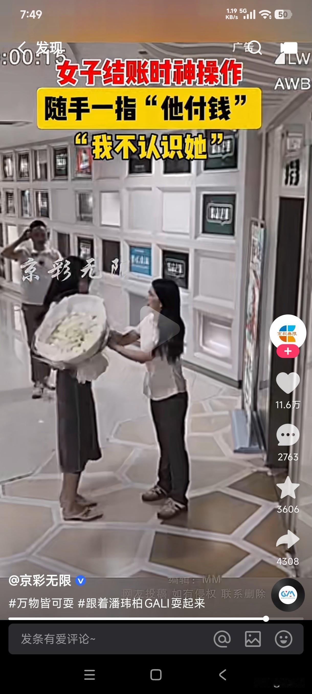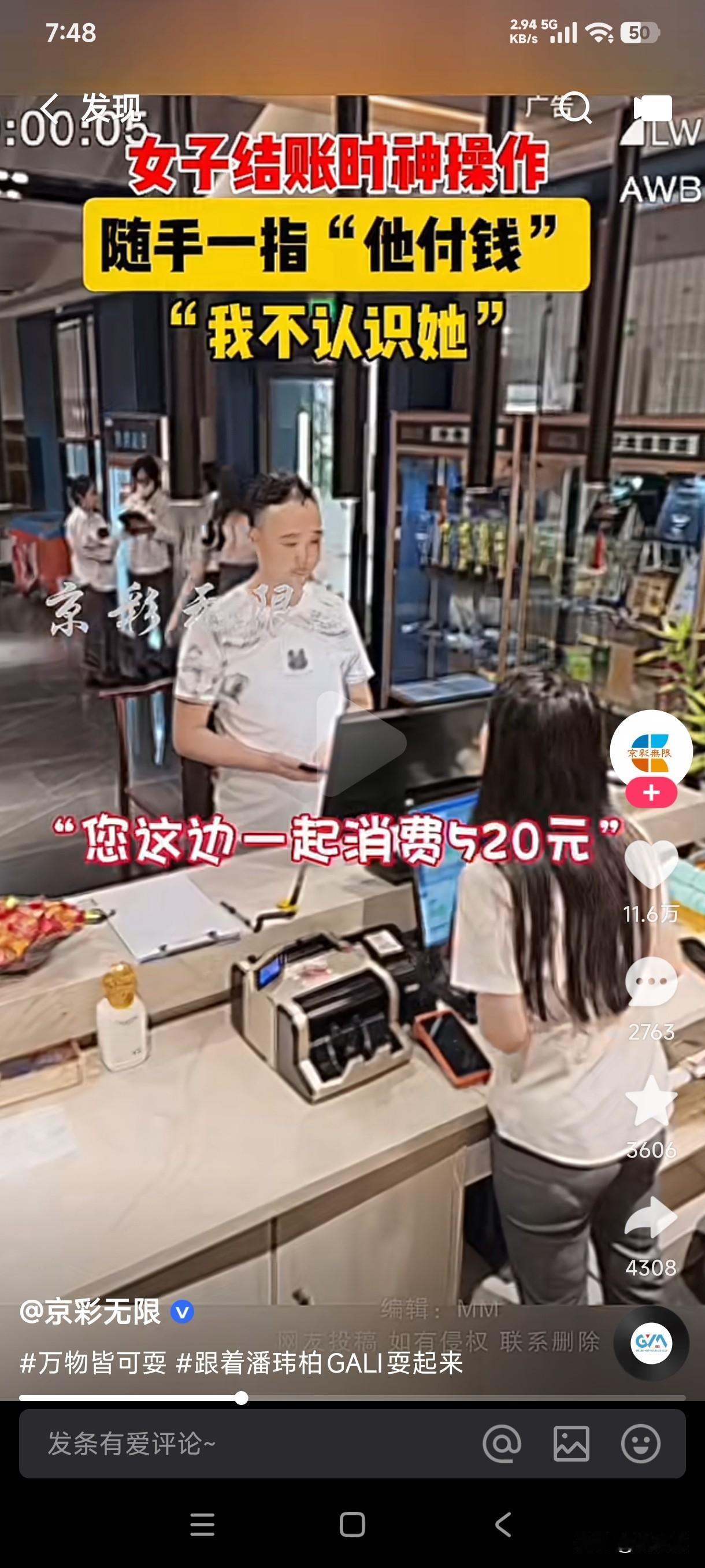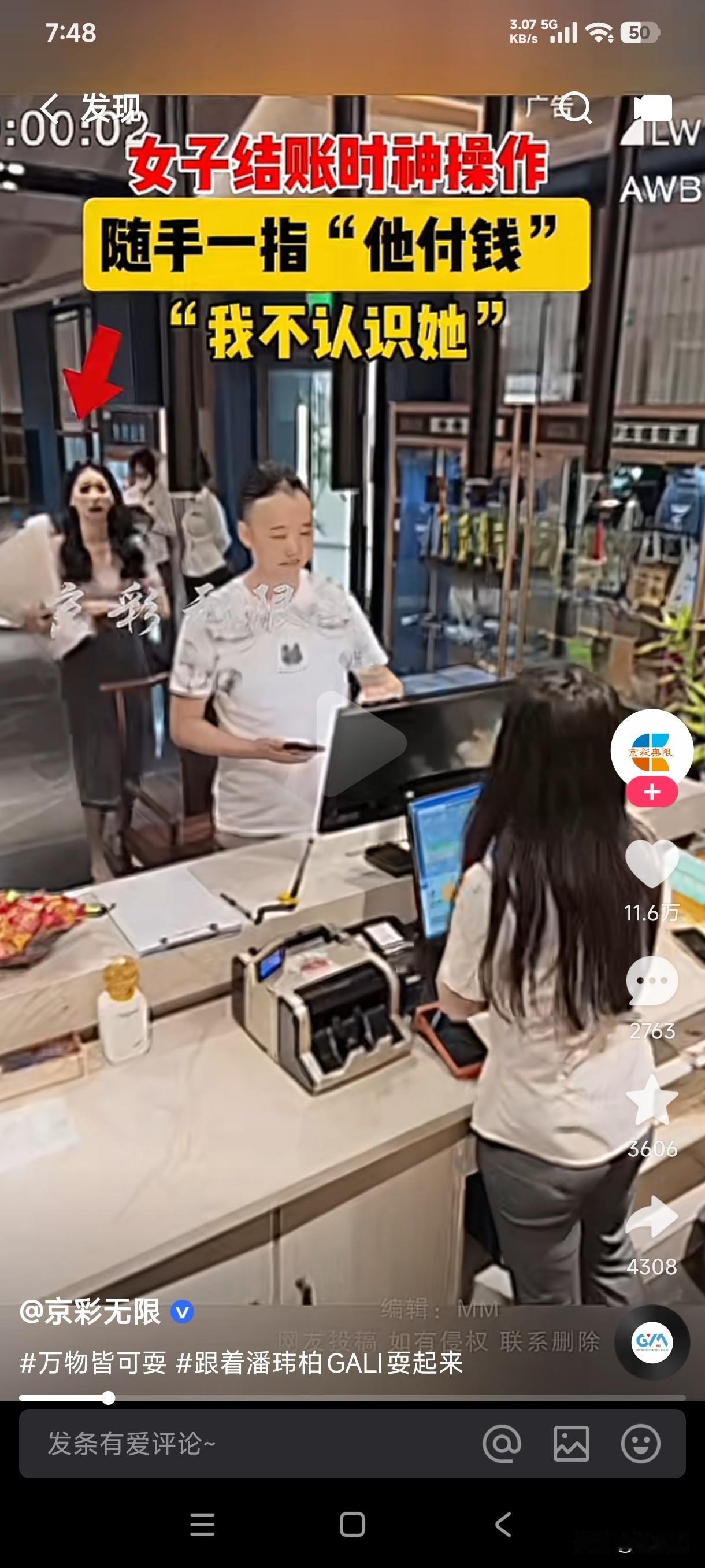 还从来没有见过这么不要脸的人,买完东西付钱时跟在不认识的人后面,居然对收银员说一起的让他付钱…… 这女子看起来长的人模狗样的,居然会做出这种不要脸的事来,这男子付钱时收银员给他一算520元,男子顿时也一脸懵逼,他根本就没买那么多东西,结果收银员说你和身后的女子不是一起的吗?和她的一起算了啊……结果男子说自己根本就不认识那个人,收银员立即跑出去去追那个女子,最后她返回乖乖付款。 果然林子大了什么样的鸟都有,这样的人天生就是缺少管教,这种玩意不知是如何长大的,真是丢人丢到姥姥家了?