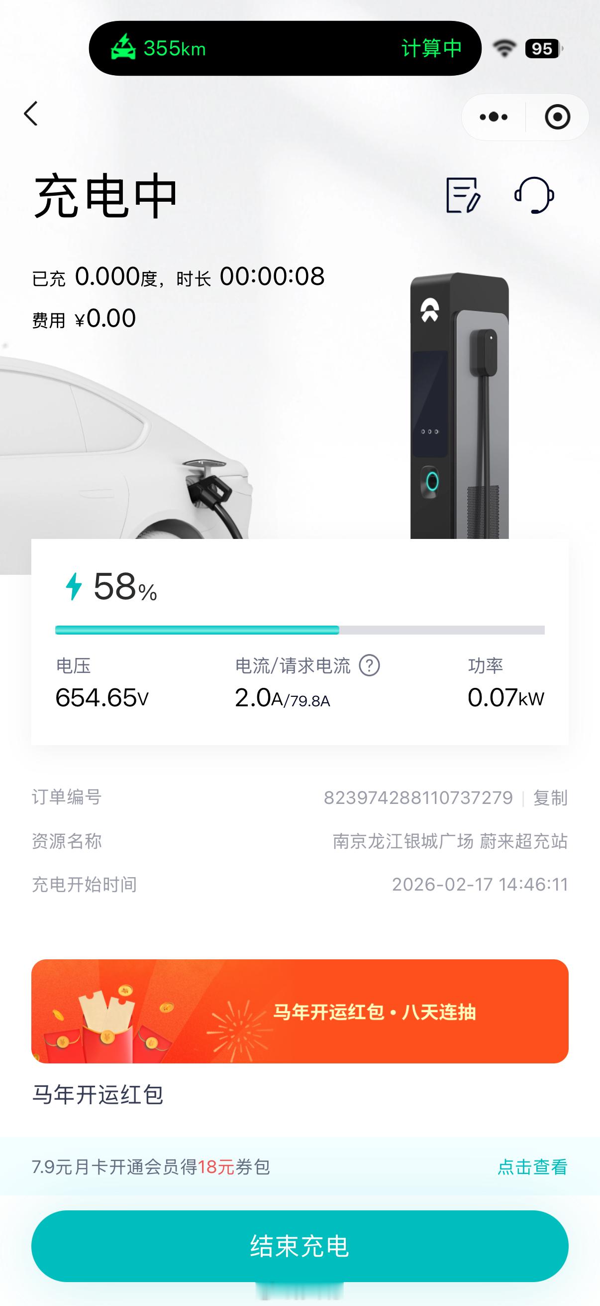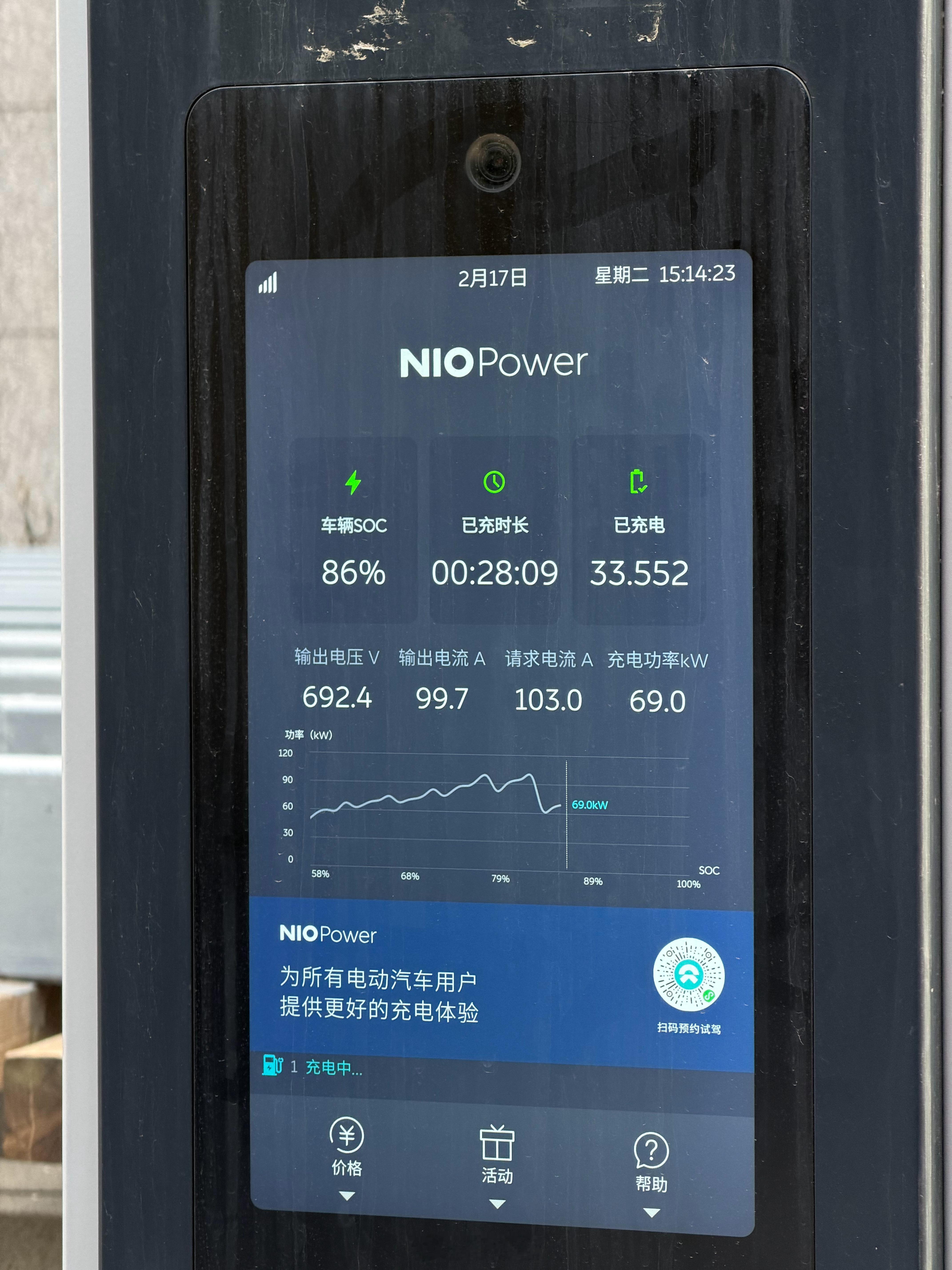今天第一次体验蔚来超充电桩,可视化做的非常不错,各种数据一目了然南京·南京新城