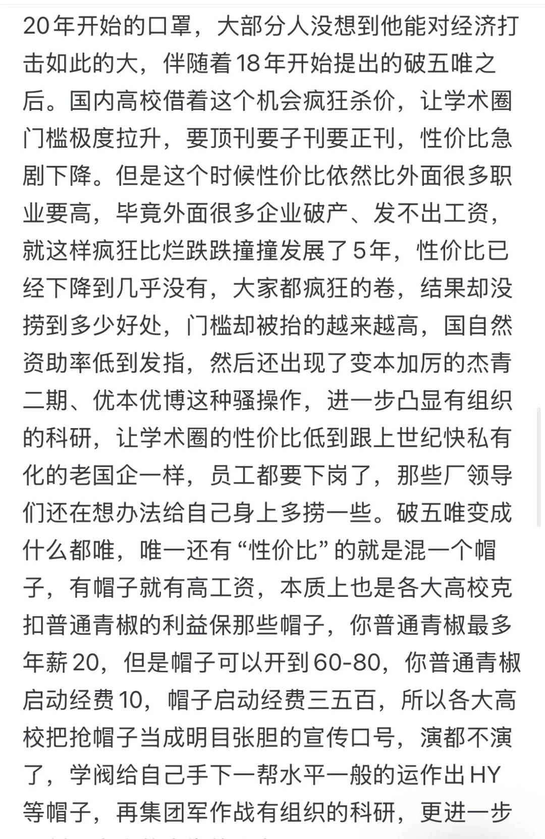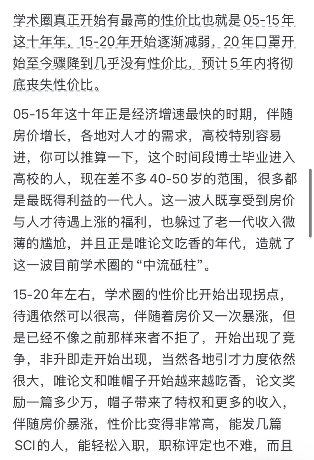 学术圈的性价比一直是不高的啊,只不过在前些年某个时段比烂开始,他显得有性价比了,结果没几年又立刻变得更烂了而已。