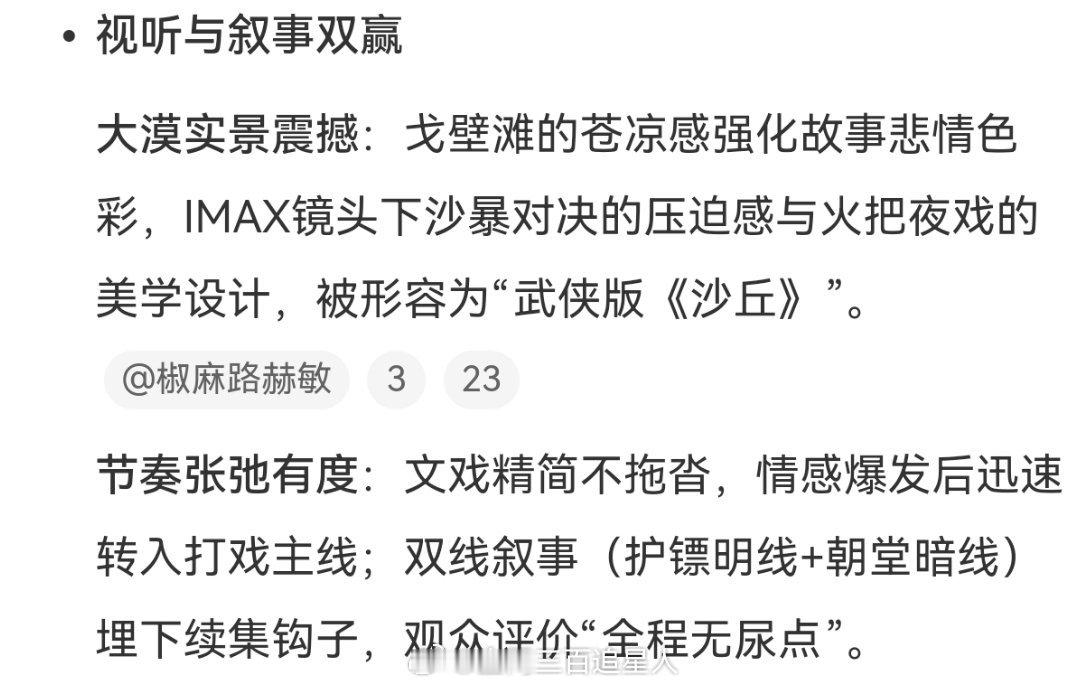 观众称镖人远超预期 镖人真的太惊喜了,不愧是拳拳到肉的动作戏,看起来真的特别的过瘾,年少时候的武侠梦又回来了,看完之后已经想约身边的朋友一起去二刷了镖人第一波反馈