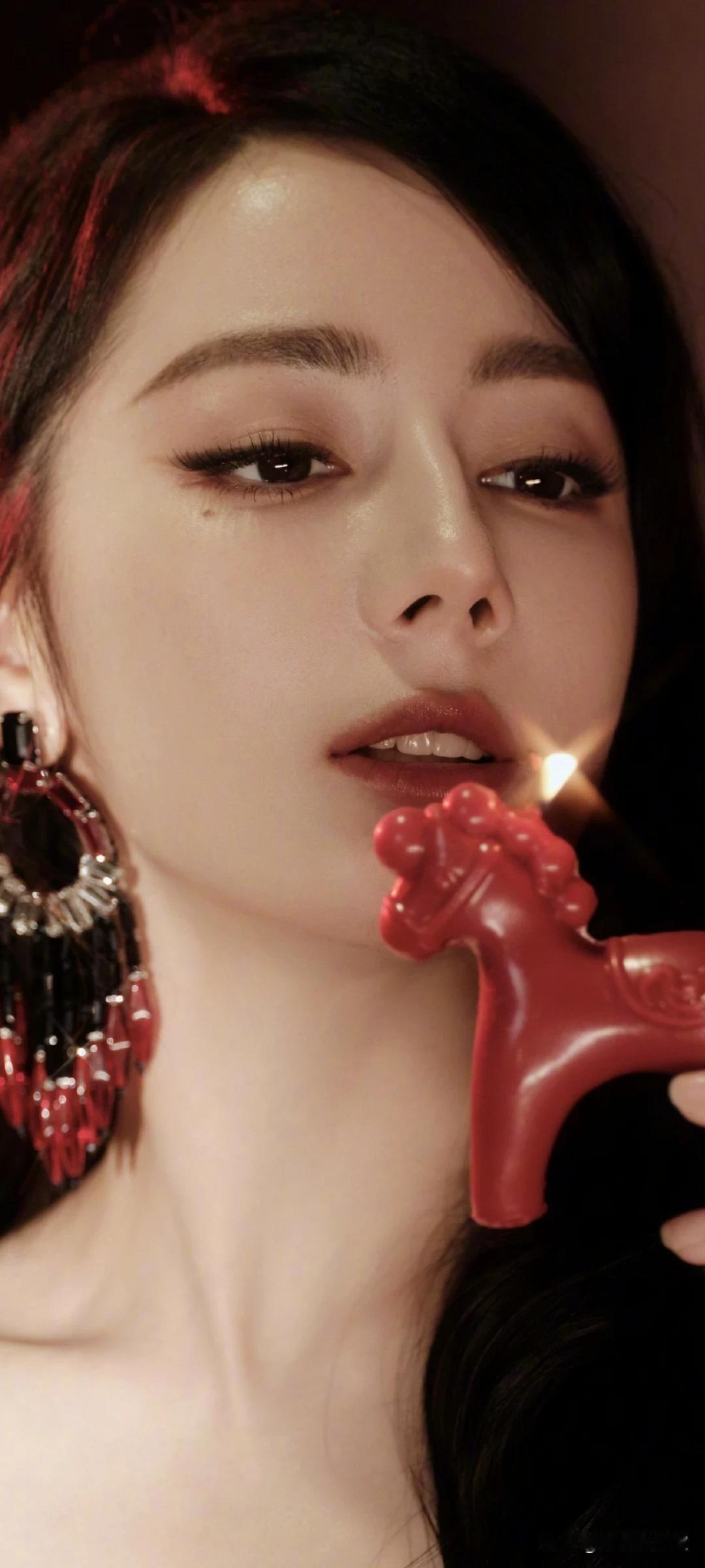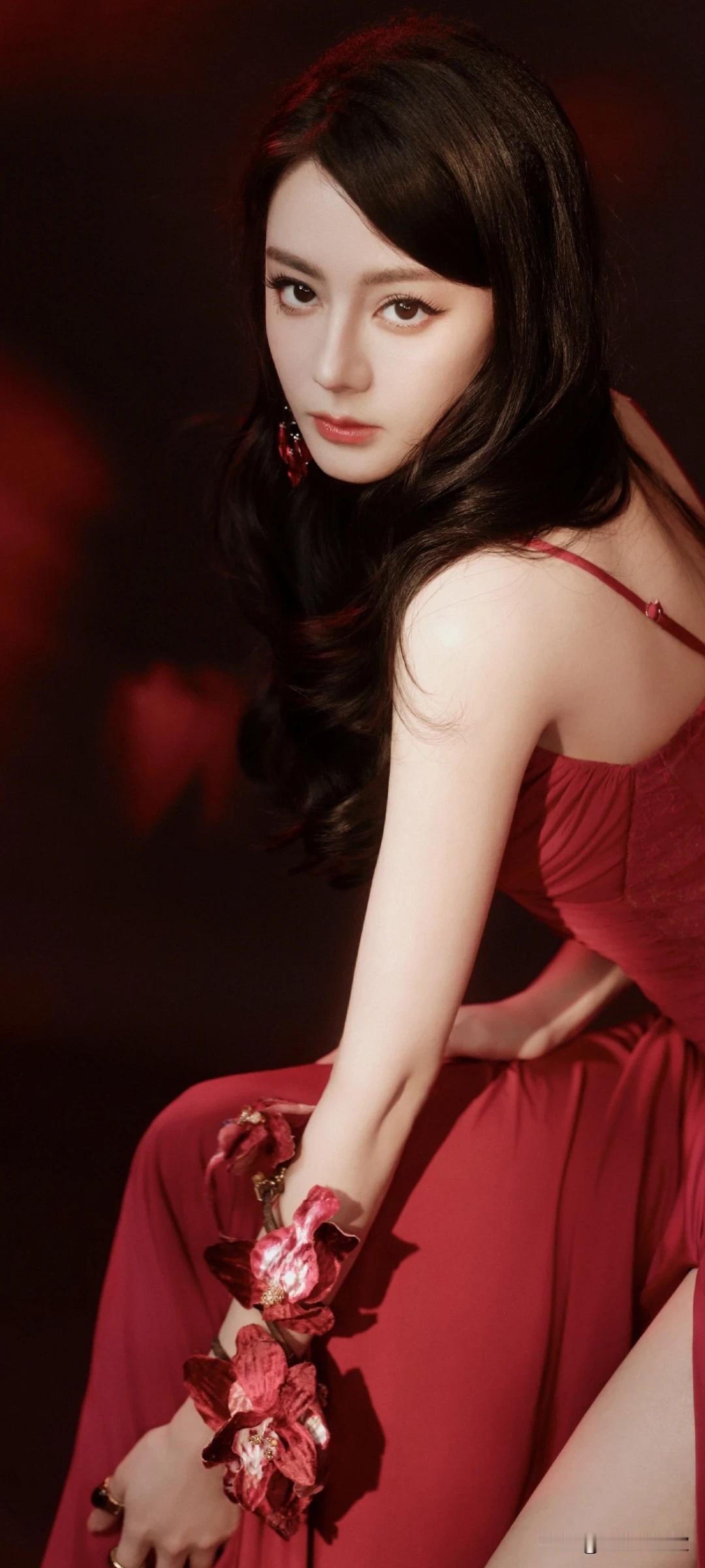 迪丽热巴壁纸~ 暗夜红裙美人,这性感与优雅的碰撞绝了!