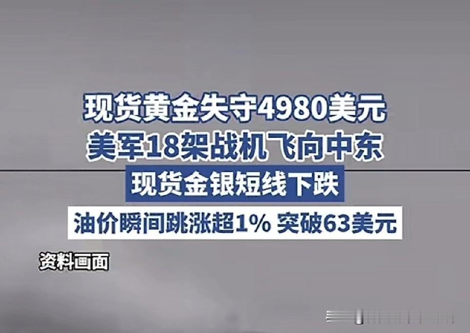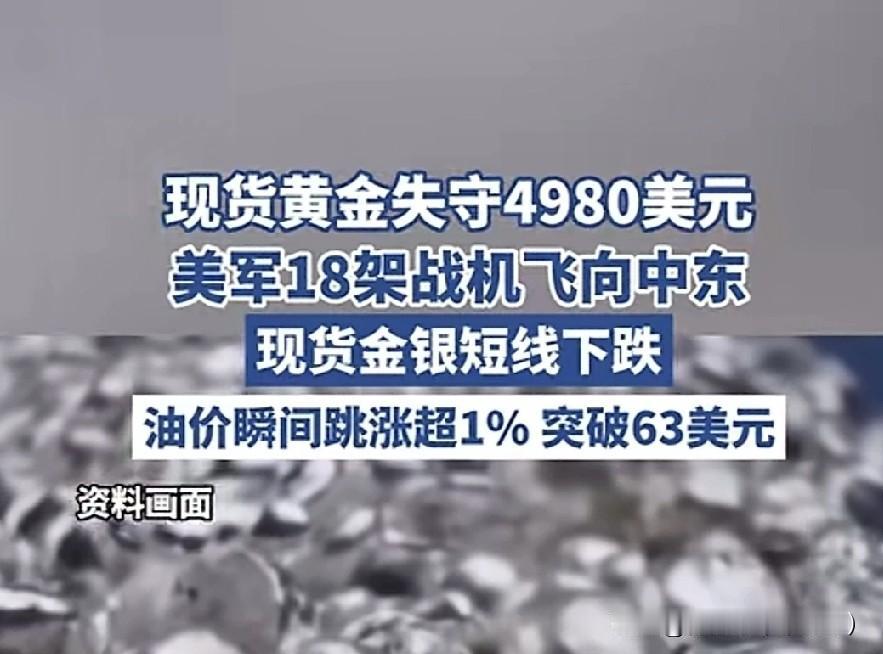 美军18架战机扑向中东!! 黄金却崩了,原油疯涨,这市场疯了? 按常理,中东一乱,黄金这种避险资产该蹭蹭往上冲才对。可这次,现货黄金直接跌破4980美元/盎司,短线跌了快10美元,白银也跟着跌了0.4美元。反倒是NYMEX原油,瞬间跳涨超1%,直接冲破63美元/桶,上演了一出“黄金跌、原油涨”的罕见戏码。 为啥会这样?市场逻辑变了。以前大家觉得打仗就买黄金,现在更担心的是美联储会不会借着地缘冲突的由头,继续加息来压通胀。一旦利率走高,持有黄金的机会成本就变大了,资金自然就往外跑。而中东是全球石油的命脉,美军一调动,市场就怕石油供应出问题,所以资金疯狂涌入原油期货避险。 这对我们普通人有啥影响?首先,油价涨了,开车成本肯定要上去。其次,黄金下跌,手里有黄金首饰或者黄金理财的,账面上可能要亏一笔。最后,这种分化格局也说明现在的市场情绪极度敏感,一点风吹草动就能引发剧烈波动。 说白了,现在的市场已经不是简单的“乱世买黄金”了,而是在通胀、利率和地缘政治的多重挤压下,变得越来越复杂。我们能做的,就是多看少动,别被短期波动牵着鼻子走!!