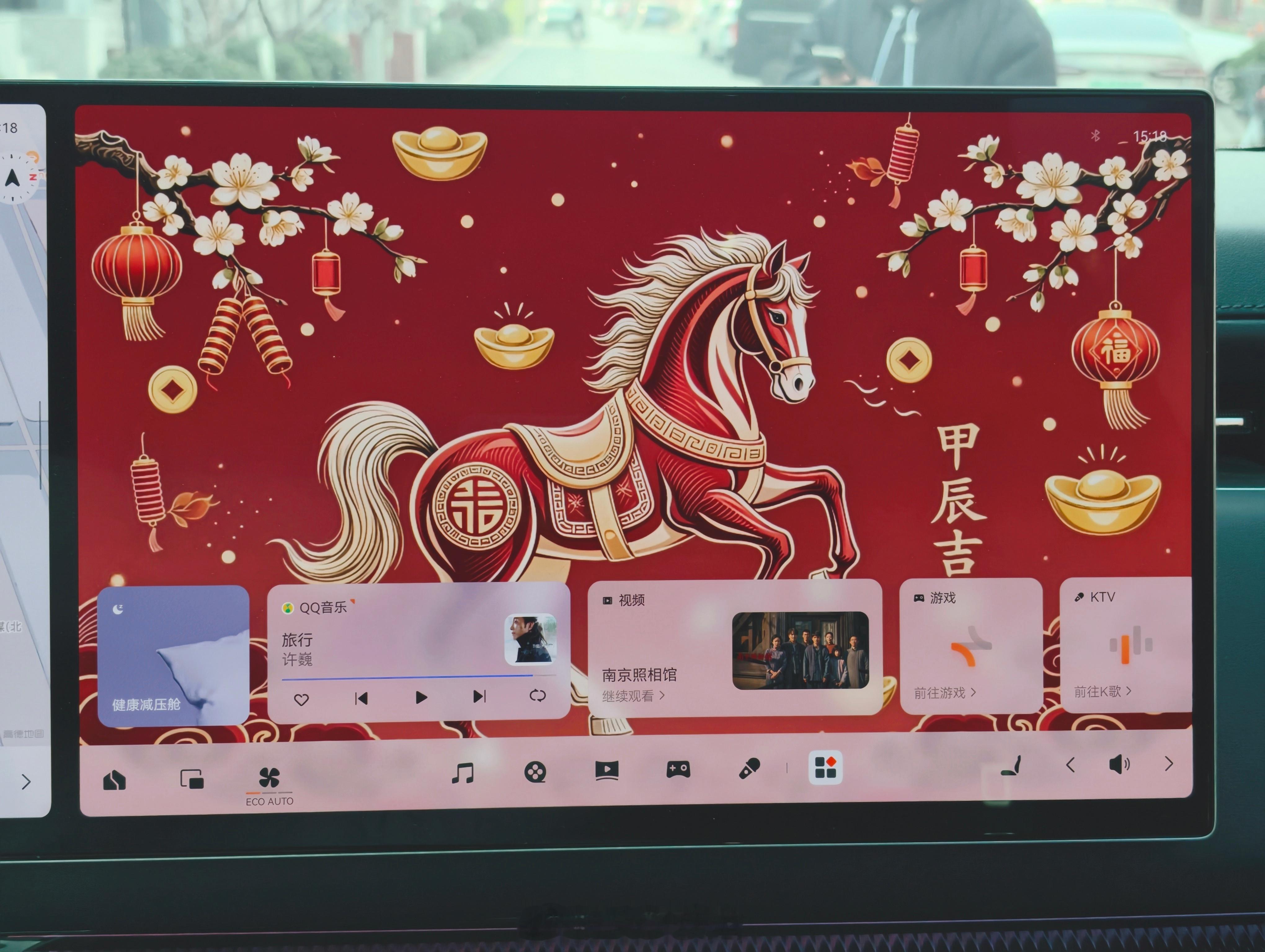 年前在北京,开着极氪9X走访了几位朋友他们都对极氪9X有兴趣,特意嘱咐让开去看看走访过程中我就发现这个后备厢的天地门还真是好用——展开后是一个平面,放置礼品时挺趁手,当拿取一部分时只打开一半也避免尴尬桌面的壁纸换成了马年的喜庆主题,迎宾灯效也设置成了龙行天下,都透着过年的氛围感,朋友们一看直说我有心了,其实这些仪式感都是极氪9X给的对了,最近在北京的能耗表现一直都不错,稳定在17kWh/100km(图9)