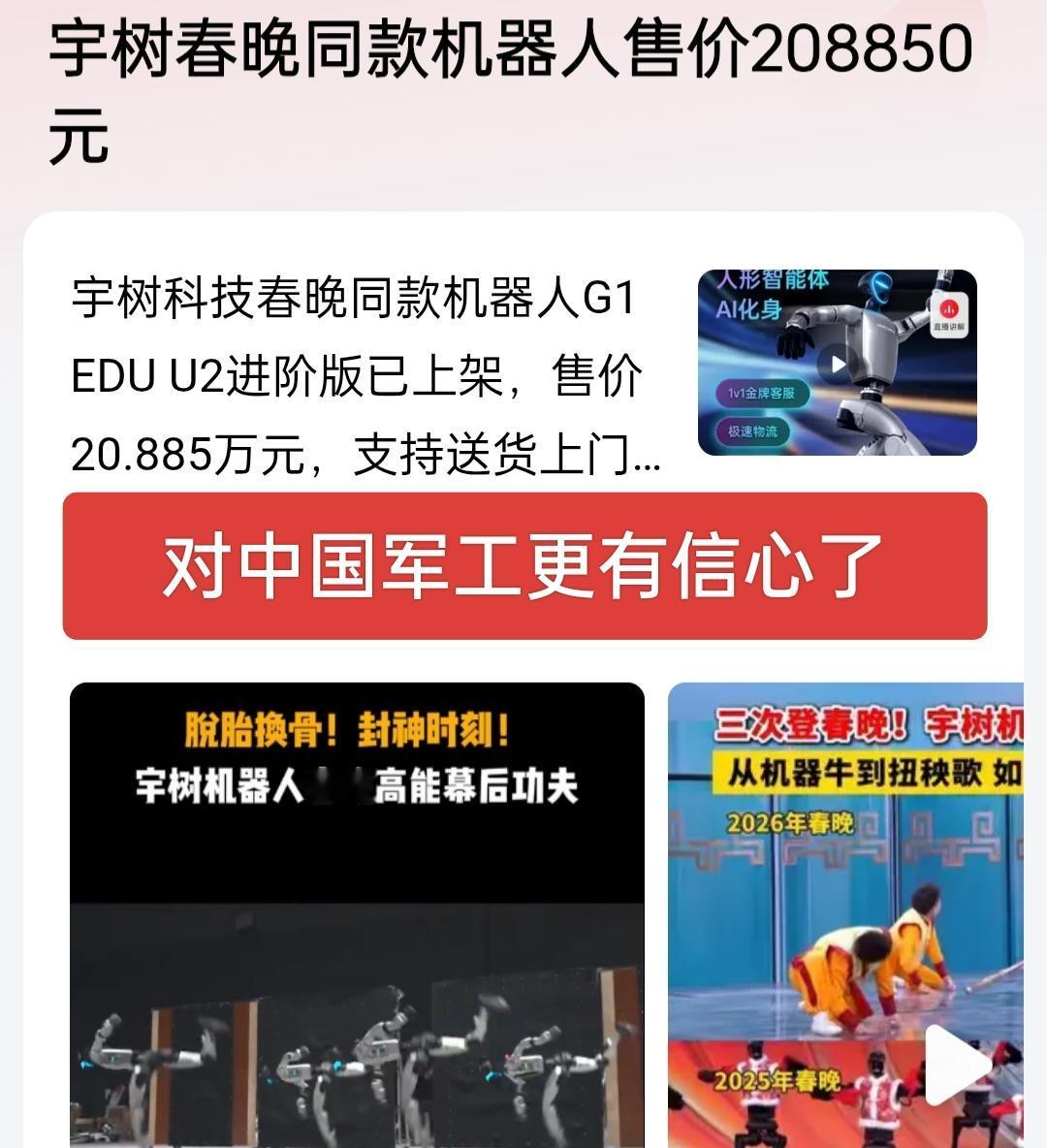 2026年春晚最大的亮点就是机器人了,真的是太强大了,进化的速度太快了,民用机器人都如此夸张,那军用机器人得厉害到什么程度!对中国军工更有信心了! 合成旅进化成机器人军团,那岂不是无敌的存在,发出指令就可以了,必能攻无不克,战无不胜,横扫一切!