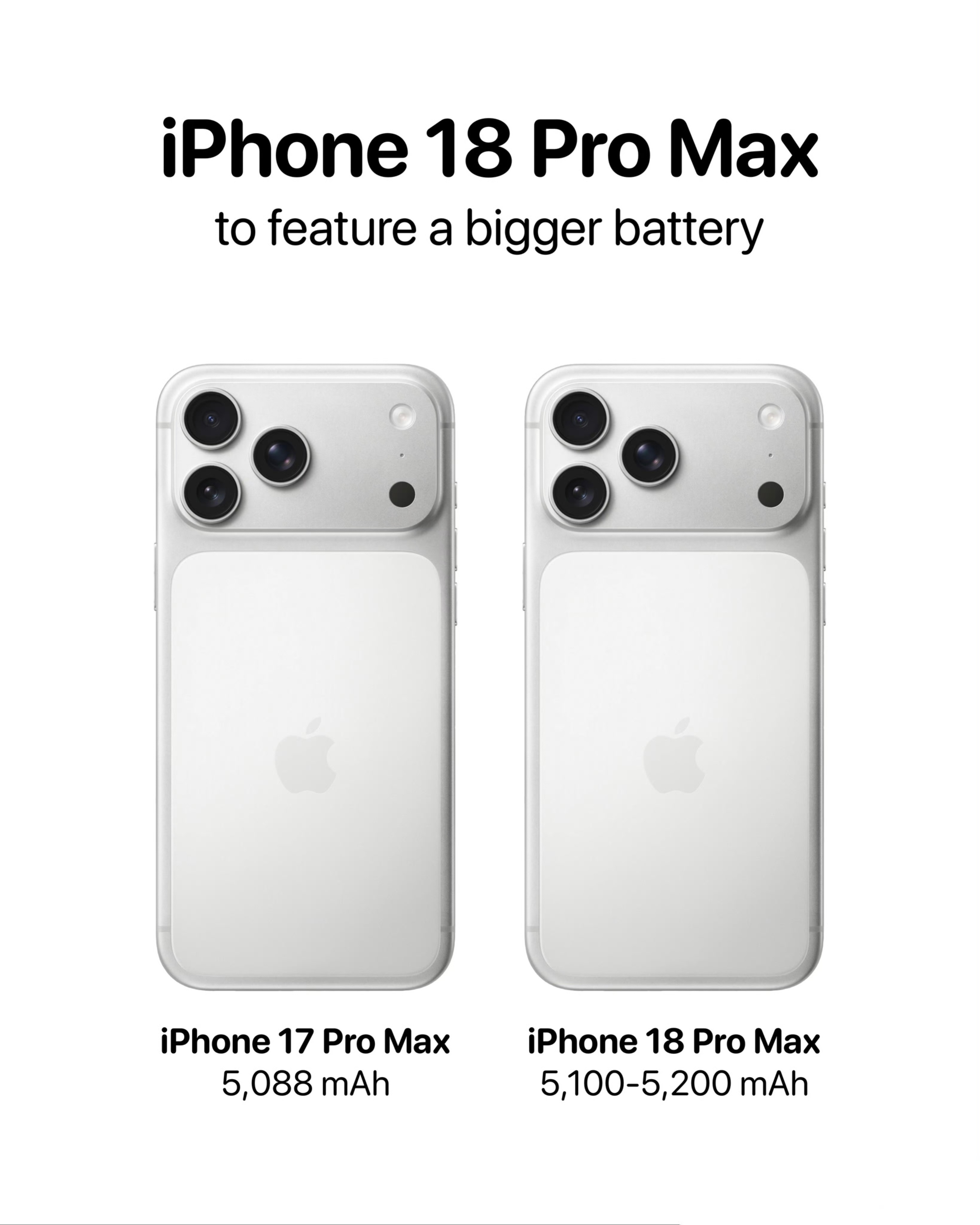 iPhone18ProMax或无重大更新 主要还是iPhone 17 Pro Max牙膏挤爆了,iPhone 18 Pro Max主要还是续航增加了,影像上加入了可变光圈,其他升级比较小