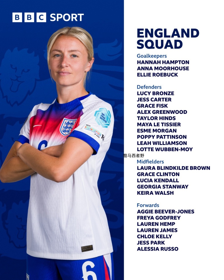 英格兰女足主教练魏格曼点齐征战三月份开始的欧洲区世界杯预选赛26人大名单,雌狮女足的边锋戈弗雷和边后卫帕廷森入选,最近看了不少场英女超联赛,总能在观众席上看到魏格曼的身影,20岁的戈弗雷最近的表现确实不错,既有助攻又有进球,雌狮女足引进这个球员没看走眼,不过帕廷森入选就看不太懂了,雌狮和布莱顿的比赛,帕廷森根本防不住布莱顿右边锋清家贵子。另外英格兰锋线上可选的人太多了,其实我觉得热刺女足的老国脚贝瑟尼.英格兰也完全有资格入选,同样英格兰最近也是状态出奇得好。 资格赛英格兰和西班牙、冰岛、乌克兰分在A3组,A级别的小组赛每个组只有一个直升世界杯的名额,4月14日和6月5日英格兰和西班牙两回合交手决出小组第一,和亚洲区相比,欧洲区十一个世界杯出线名额加一个附加赛名额,实在是有点少,如果我们在欧足联的话,世界杯想出线很难