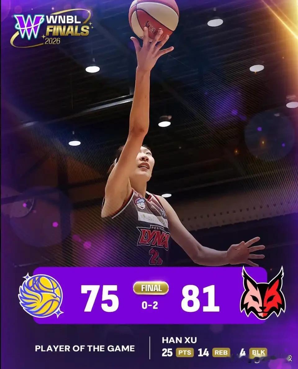 持续高光!北京时间2月17日大年初一,正在澳大利亚女篮联赛WNBL联赛随队征战季后赛的中国女篮国手韩旭又有出色表现:在半决赛山猫对阵精灵队第二回合比赛中,韩旭再次上演了出色发挥,她在25分钟的时间贡献25分14篮板4封盖,并且没有获得一个罚球。在她攻防两端的强力保证下,山猫队81-75力克对手,大比分2-0淘汰对手晋级决赛! 自从告别WCBA重新开始留洋生涯以来,韩旭仅用一个赛季便迅速找回了状态,在WNBL常规赛中场均贡献18分7.4篮板2封盖,展示出了全面的能力。而在季后赛中韩旭更进一步,继续提升个人数据的同时,更将数据转化为对比赛实实在在的积极影响,可以说,通过这个赛季的留洋,韩旭不仅有效提升了她的竞技状态,更唤起了球迷对她的支持。 从身体条件和技术特点看,更机动灵活、具备如何投篮能力的韩旭是当前世界篮球潮流最合适的中锋模板,但长期以来,她在国内缺乏竞争的比赛环境中蹉跎了自己,间接影响了国家队的比赛状态。好在现在她终于迈出了正确一步,对于中国女篮和球迷来说,这是一个好消息。韩旭25+14率队晋级WNBL决赛 中国女篮
