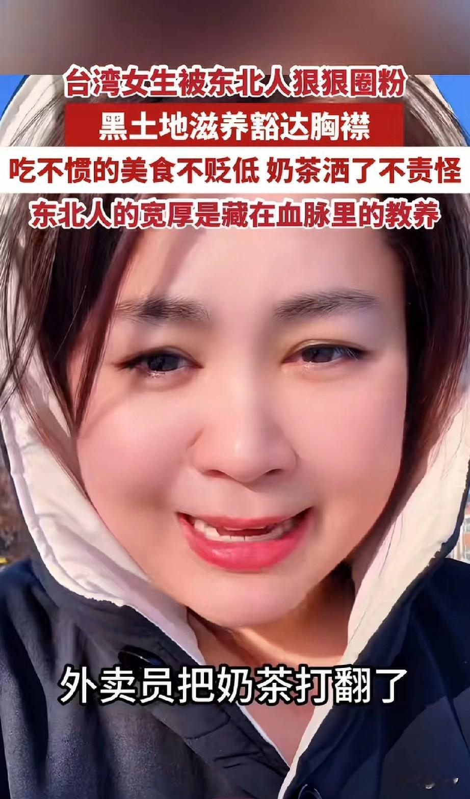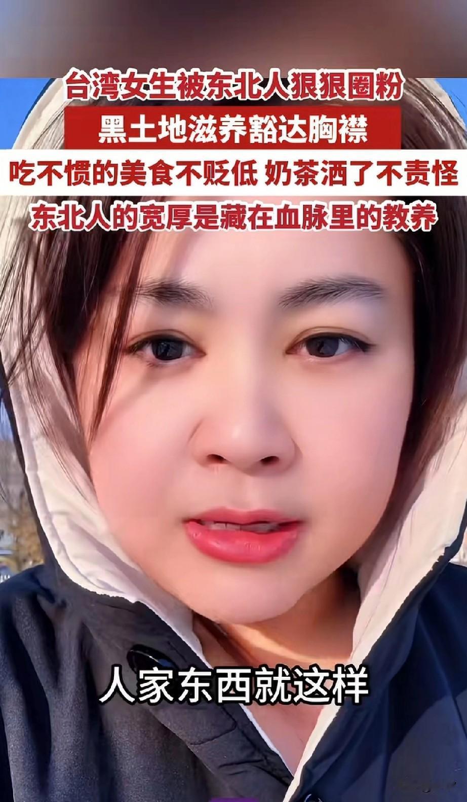 台湾女生被东北人圈粉, 她说辽阔的黑土地生不出狭隘的心, 在东北人身上具象化了, 有次他和东北朋友去北京出差, 当自己面部狰狞的喝豆汁的时候, 东北同事居然淡定的说人家东西就这样, 咱喝不惯也正常, 当她发现被宰客的时候, 同事居然说宰就宰呗,难得出来玩, 就连她的鞋子买小了, 她的东北同事居然说穿两天就撑大了, 外卖员把奶茶打翻了, 她的东北同事居然说, 哎呀妈呀,幸好还有半杯, 东北人还真是心里敞亮, 吃不惯的美食不贬低, 奶茶洒了不责怪, 东北人的宽厚是藏在血脉里的教养, 总结的还真是很到位, 东北人确实比较开朗, 接触过的人都知道东北人能说会道, 他们非常容易合群, 大家喜欢这样的东北人吗? 东北人 你对东北人的整体印象怎么样? 请用一句话证明你是东北人 东北人观念转变