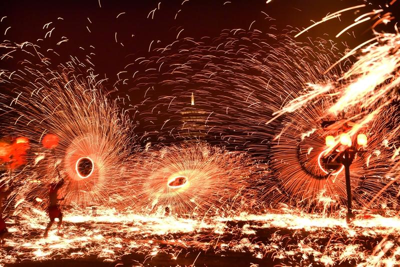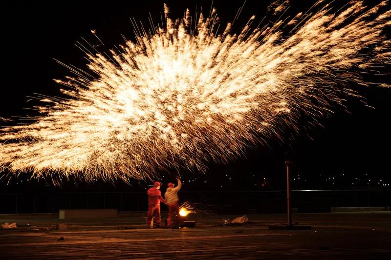 在山西过年,烟花是绕不开的浪漫。夜幕降临,古城墙灯笼亮起,陈醋与炸年货的香气弥漫,烟花升空,“火树银花落,万点星辰开”,山西的年瞬间鲜活起来。 大同古城墙下,春节时游客和游子齐聚。烟花冲向夜空,站在御河西路,能看到烟花与古城墙同框,历史与现代对话。晋中“南庄架火”,靠老艺人代代相传的手艺,十几米高架火悬在空中,绽放是对传统的致敬。 而忻州古城的打铁花更炽热。匠人们将1600℃铁水击向夜空,金色铁花如流星雨,“东风夜放花千树”。那些匠人身上的烫伤疤痕,是“年的印记”。在山西过非遗焰火年,太有氛围感了!
