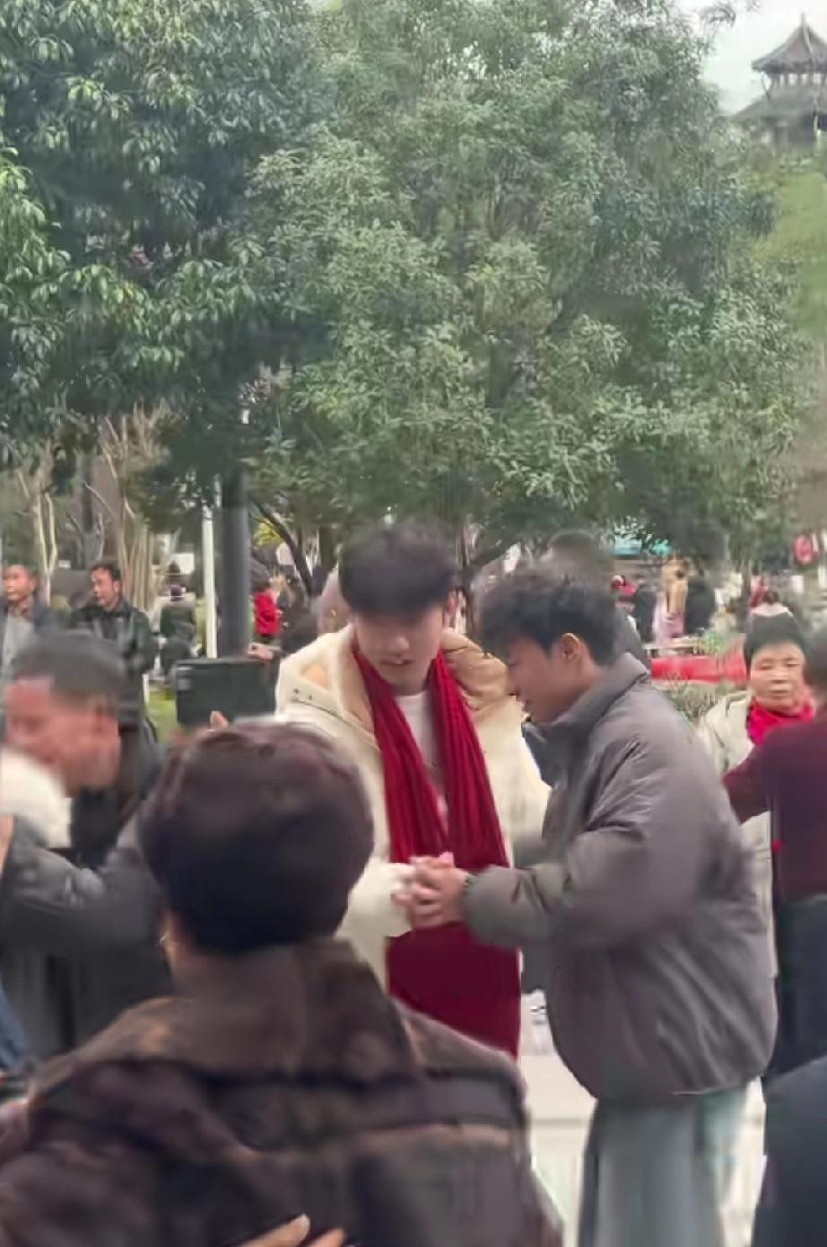 大家快来看,舞王回老家在露天舞厅跳舞啦!只是没有舞后的配合,这动作看起来怪怪的。看来搭档真的很重要哟! 鹏鹏给大家介绍,他来自歌舞之乡,那边有路边交响乐,有露天舞厅。看起来很有过年的气氛,尤其鹏鹏戴的大红围巾。 董宇辉 与辉同行