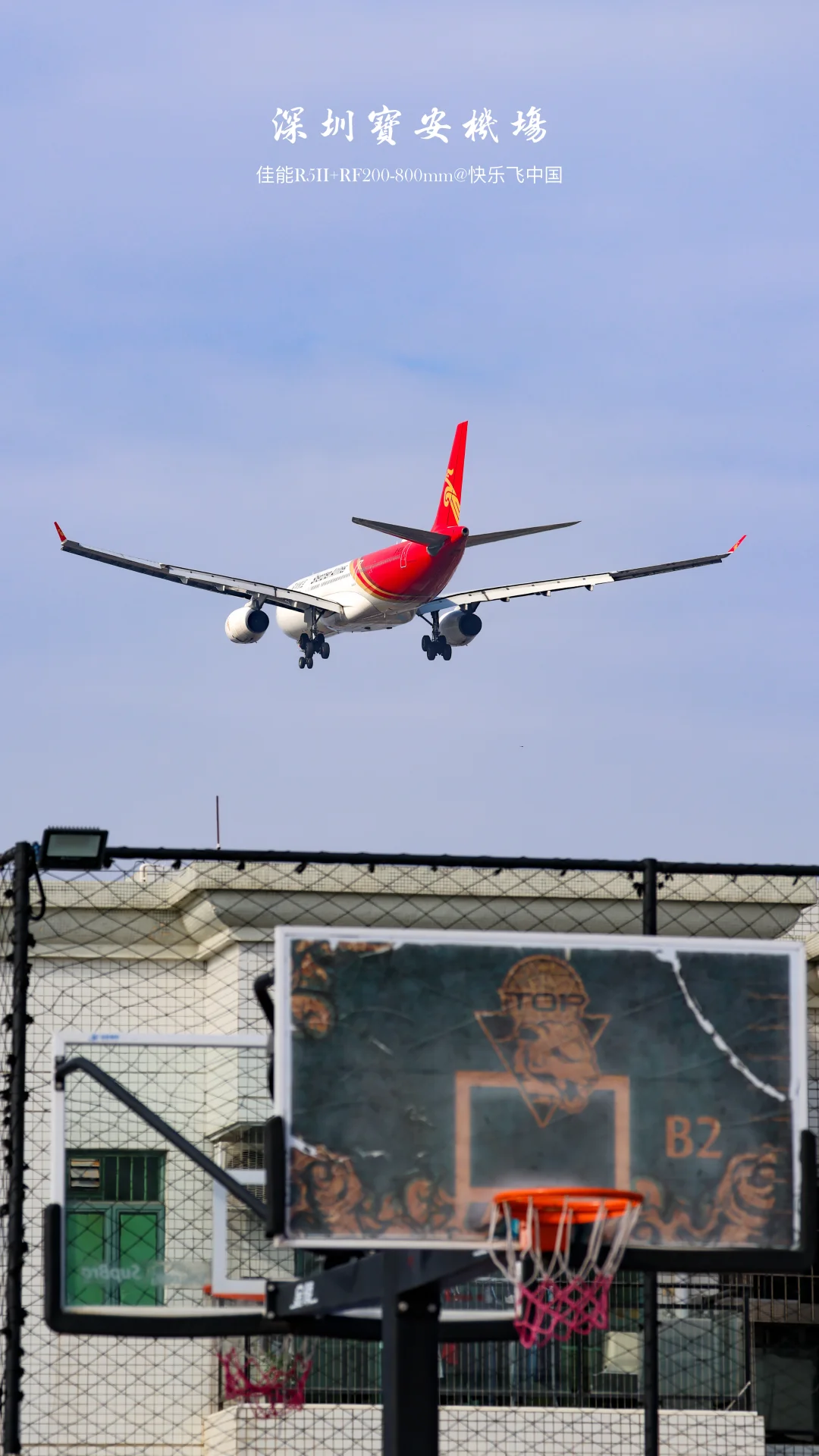 📷也是用 200mm 拍飞机和深中通道同框,推荐日落来,氛围感拉满,也能拍到南进时 2跑降落的飞机,和篮球架同框