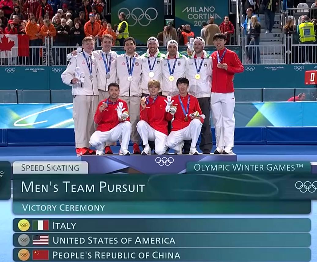 冬奥会:中国队赚一枚铜牌。 2月18日,中国队夺得速度滑冰男子团体追逐赛的铜牌。 中国队在半决赛用的阵容是刘瀚彬、宇忠岩和吴宇,但在资格赛和三四名决赛用的是刘瀚彬、吴宇、李文淏,于是,在颁奖典礼上,中国队领奖的人员是4人。 而冠军意大利队和亚军美国队,他们从头到尾都是3人参加比赛,所以他们领奖的都是3人。 这不,中国队赚一攻铜牌。 值得一提的是,中国队好像用人出问题了。半决赛用拿到个人铜牌的宁忠岩,是3分52秒,而没用宁忠岩的两场比赛,中国队的成绩都是3分41秒,而美国队半决赛和决赛的成绩都在3分43秒之外。如果半决赛不用宁忠岩,中国队是可以杀进冠亚军决赛的,但滑意大利队是真滑不过。
