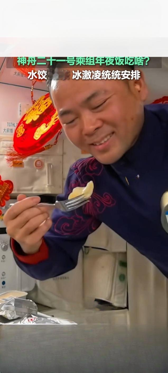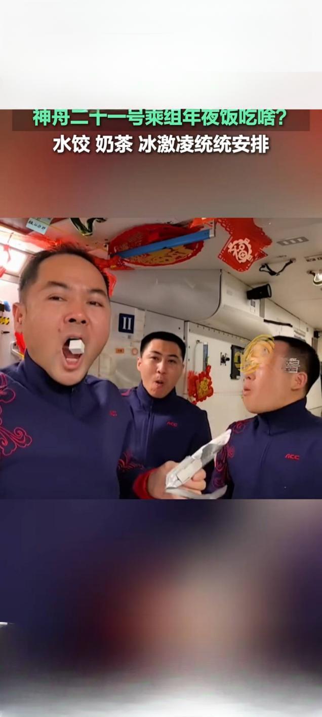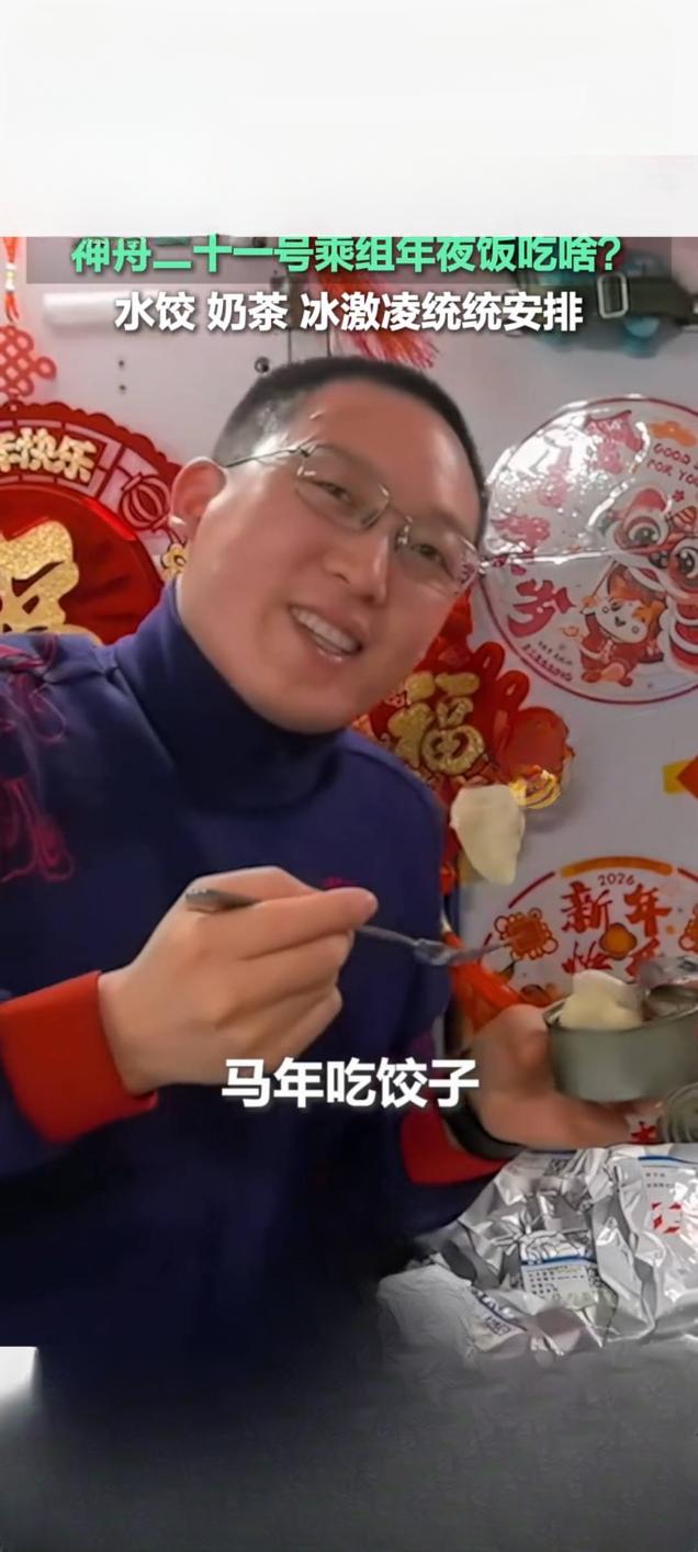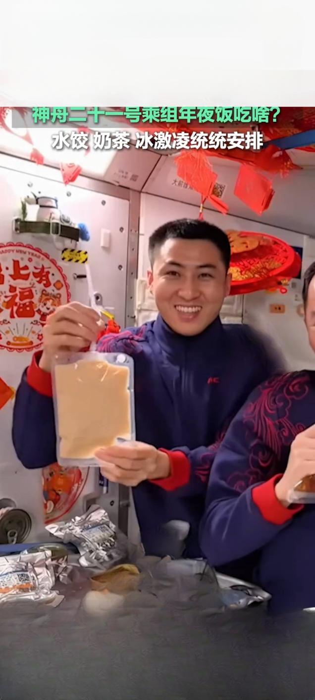 神二十一乘组乐享太空年夜饭 水饺奶茶冰淇淋一应俱全 □ 本报记者 除夕之夜,距地球约400公里的中国空间站内,神舟二十一号乘组张陆、武飞、张洪章迎来了别样的太空年夜饭。相关视频在快手平台播放量已达709.1万次,引发全民关注 。 舱内红福字与春联点缀,年味十足。菜单兼顾传统年味与科技巧思,不仅有虾仁、猪肉黄花菜、牛肉三种馅料的水饺,更有酱肘子、五香酱牛肉等寓意吉祥的硬菜。值得一提的是,乘组还首次用太空烤箱烤制出奶香蛋糕,实现了在轨烹饪新突破。 失重环境让用餐充满趣味,饺子“飞”着跑,航天员用叉子追夹,冰淇淋则缓缓飘向嘴边 。餐后的奶茶与太空冰淇淋,更为这份团圆饭增添了甜蜜滋味 。航天员们通过镜头送上祝福,让亿万观众感受到了太空家园的温暖与中国航天的硬核浪漫。太空年夜饭 航天员的祝福