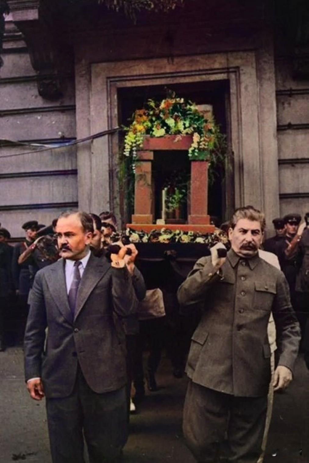1936年6月20日,苏联最高领导人斯大林在莫斯科红场亲自为无产阶级文学奠基人马克西姆·高尔基(Maxim Gorky)抬棺送灵,这是世界文学史上规格最高的葬礼之一。 1936年6月18日高尔基逝世后,苏联政府为其举行了盛大的国葬。灵柩停放在莫斯科工会大厦,数十万民众前往吊唁。 在送往克里姆林宫墙墓地的游行中,斯大林、莫洛托夫(时任人民委员会主席)、卡冈诺维奇等苏联核心领导人亲自担任护柩者,抬着装有高尔基骨灰盒的灵柩。 斯大林通过此举表达了对高尔基作为“苏联文学之父”的最高敬意。当时高尔基在苏联拥有极高的社会威望,其骨灰最终被安葬在克里姆林宫红场墓园(Kremlin Wall Necropolis)。