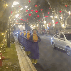 春节就是乐,乐的还有味道。 大妈们走在了马路上,已经到了边上,并没有影响交通,很好!