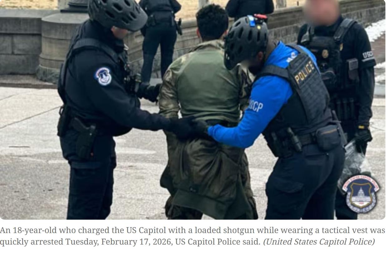 懦夫觉醒?:美国18岁青年持枪冲闯国会大厦 当地时间周二,一名穿着战术背心的18岁青年手持上膛的猎枪冲向美国国会大厦,随后被逮捕。 警方确认该男子是来自佐治亚州斯迈纳的卡特·卡马乔,并称他是单独行动,正在确定动机。 国会警察局长迈克尔·沙利文表示,卡马乔携带上膛的猎枪并携带额外子弹,驾驶一辆白色奔驰SUV靠近国会大厦后,下车并朝大楼方向冲闯,随后被国会警察拦截逮捕并拘留。 沙利文说:“如果没有警员驻守,谁知道会发生什么。” 沙利文表示“这名男子穿着战术背心,戴着“战术手套”,还在该男子的车内发现了一顶头盔和防毒面具,该车辆并未登记在他名下。 警方现已指控卡马乔无证携带步枪、持有未注册枪支和弹药,以及非法活动。