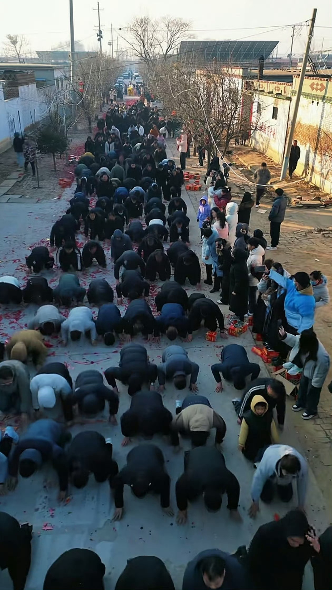 山东一村600多人集体磕头拜年我是山东滕州人,属于鲁西南地区。从小就拜年磕头,大年初一6点多就开始,因为辈分低所以基本上是挨家挨户的磕头,一家最少两个,所以磕上百个头很正常。有的人不理解为什么,也感觉这是陋习。