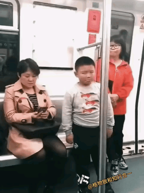 小男孩不服气的屈从,小表情、小动作表现的淋漓尽致。打服不是服,只是人微言轻,无可奈何没办法。
