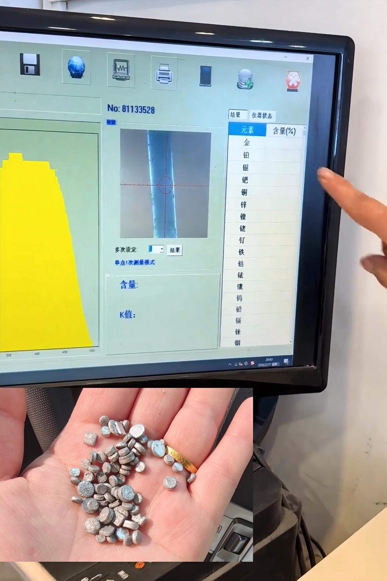 343道路捡“银子”后续,经光谱仪检测银含量为0,大家不要再去捡了。 网友将在343道路捡到的“银子”豆饼送去首饰加工店检测,光谱仪显示该物质常见金属都不是,更不是银。 大家不要再去343道路捡“银子”了,专业人士回应所谓“银子”是铝合金,工厂冲床机冲下的废旧边角料。
