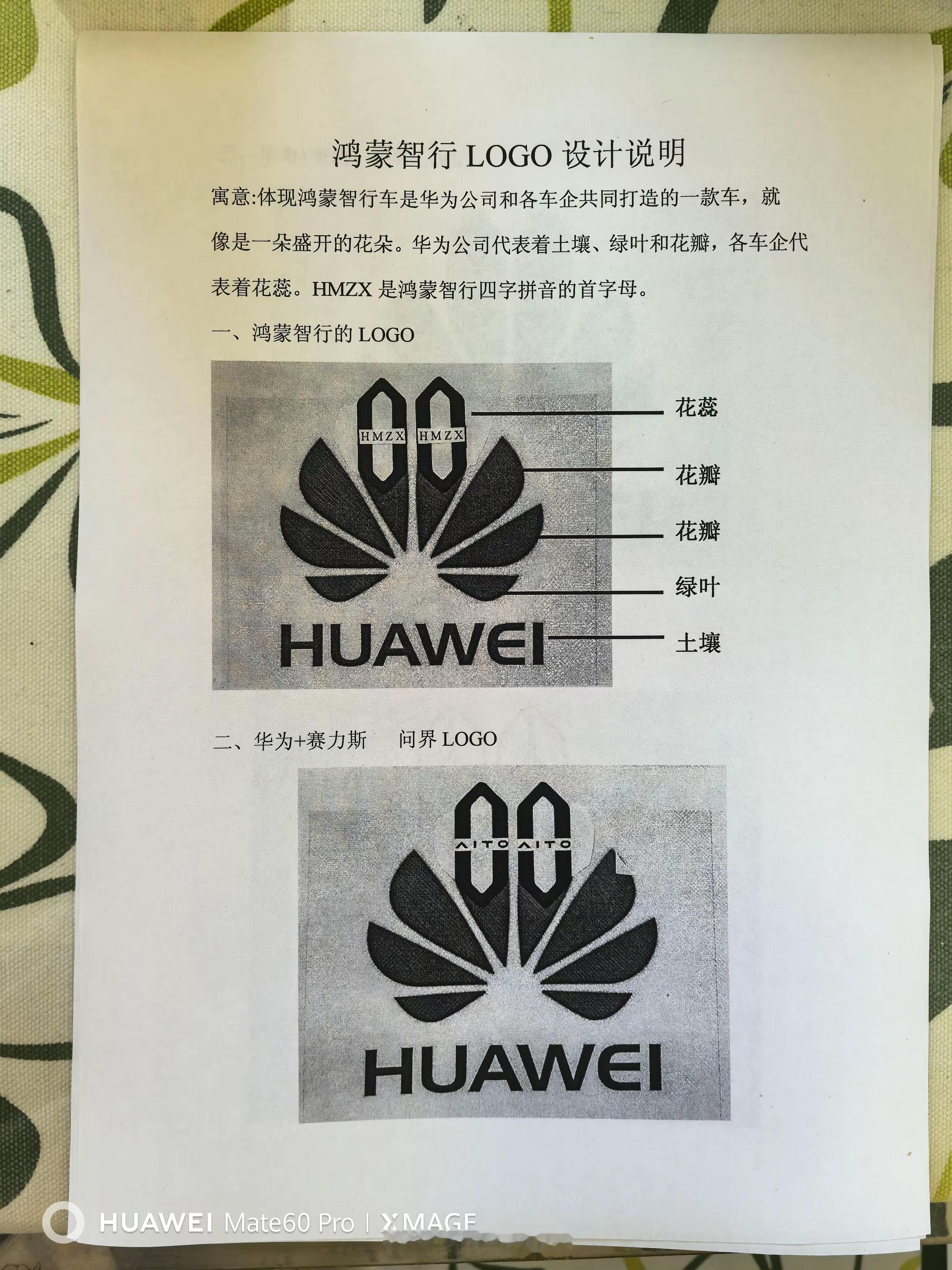 花粉设计了一套鸿蒙智行的logo,把各界车标和华为logo融为一体